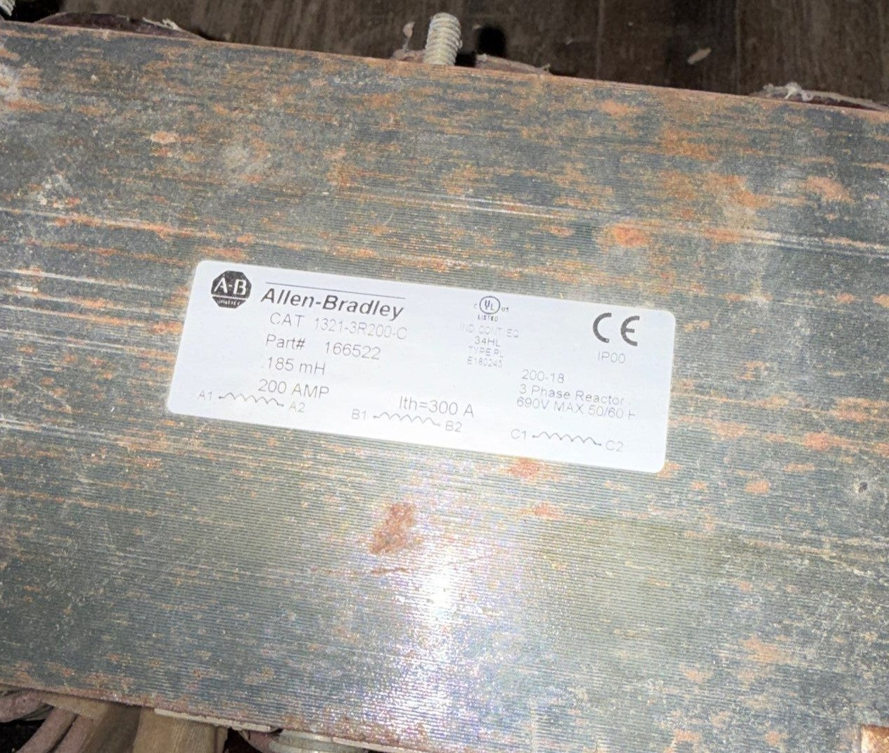 Allen Bradley 1321-3R200-C Drive Line Reactor 3PH 200A 0.185MH 200-690V 166522DRIVE LINE REACTORINPUT / OUTPUTTHREE-PHASEIP00-UL/NEMA TYPE OPEN200 AMPS0.185 MH3-5% IMPEDANCE200-690VAC