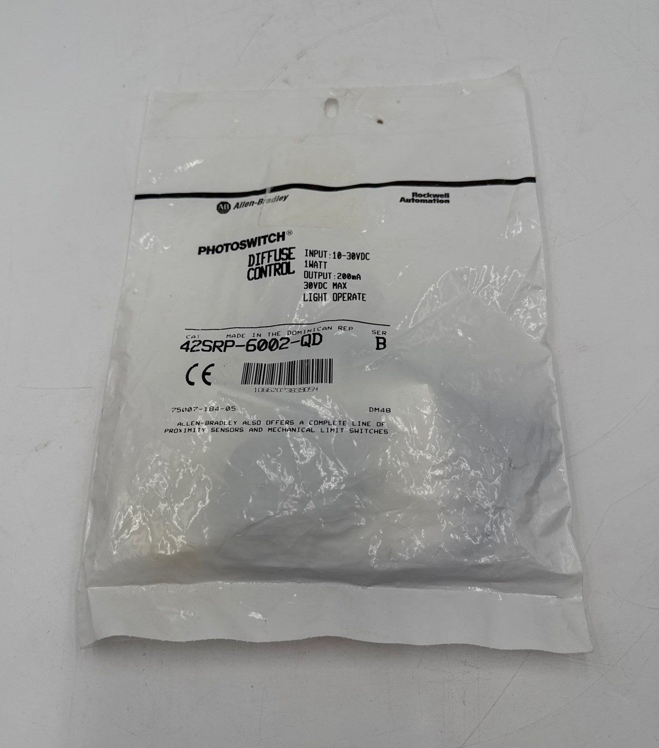Allen-Bradley 42SRP-6002-QD Series B Photoelectric Switch Diffuse ControlLight OperateIn: 10-30VDC 1 WattOut: 200mA 30VDC