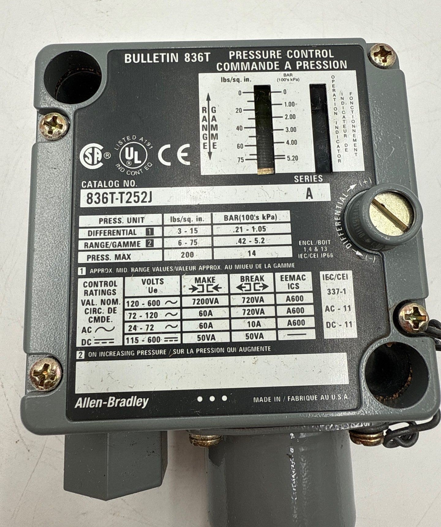 Allen Bradley 836T-T252J Pressure Switch Vacuum Control 200PSI MAX 6-75 PSI
