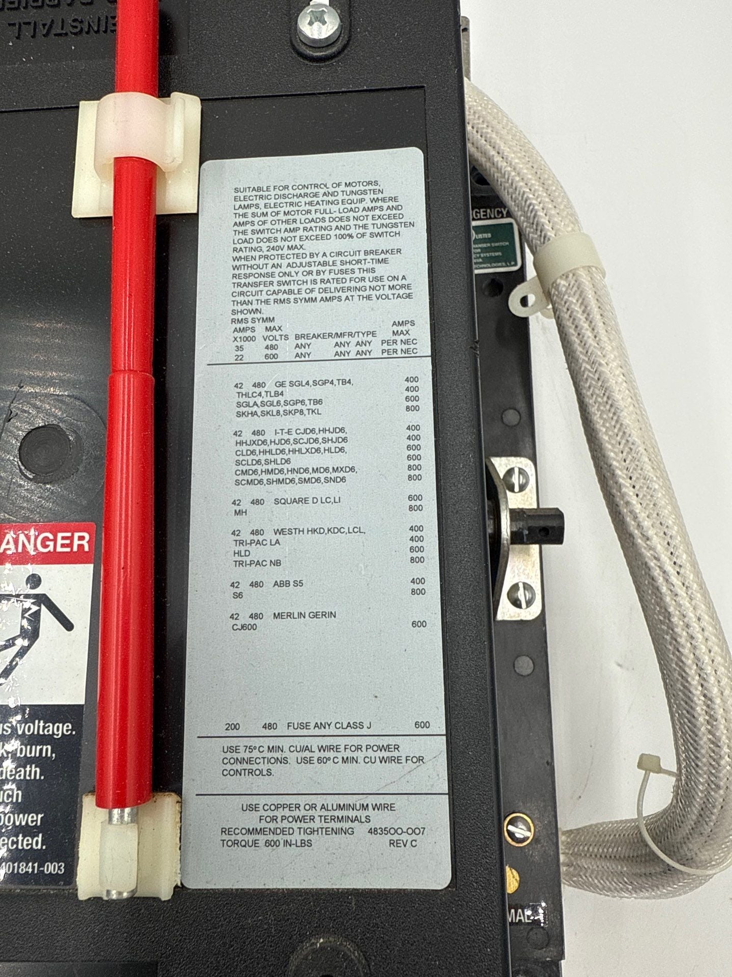 ASCO Series 300 Automatic Transfer Switch 400A 480V 50-60Hz E00300030400N1XC Used