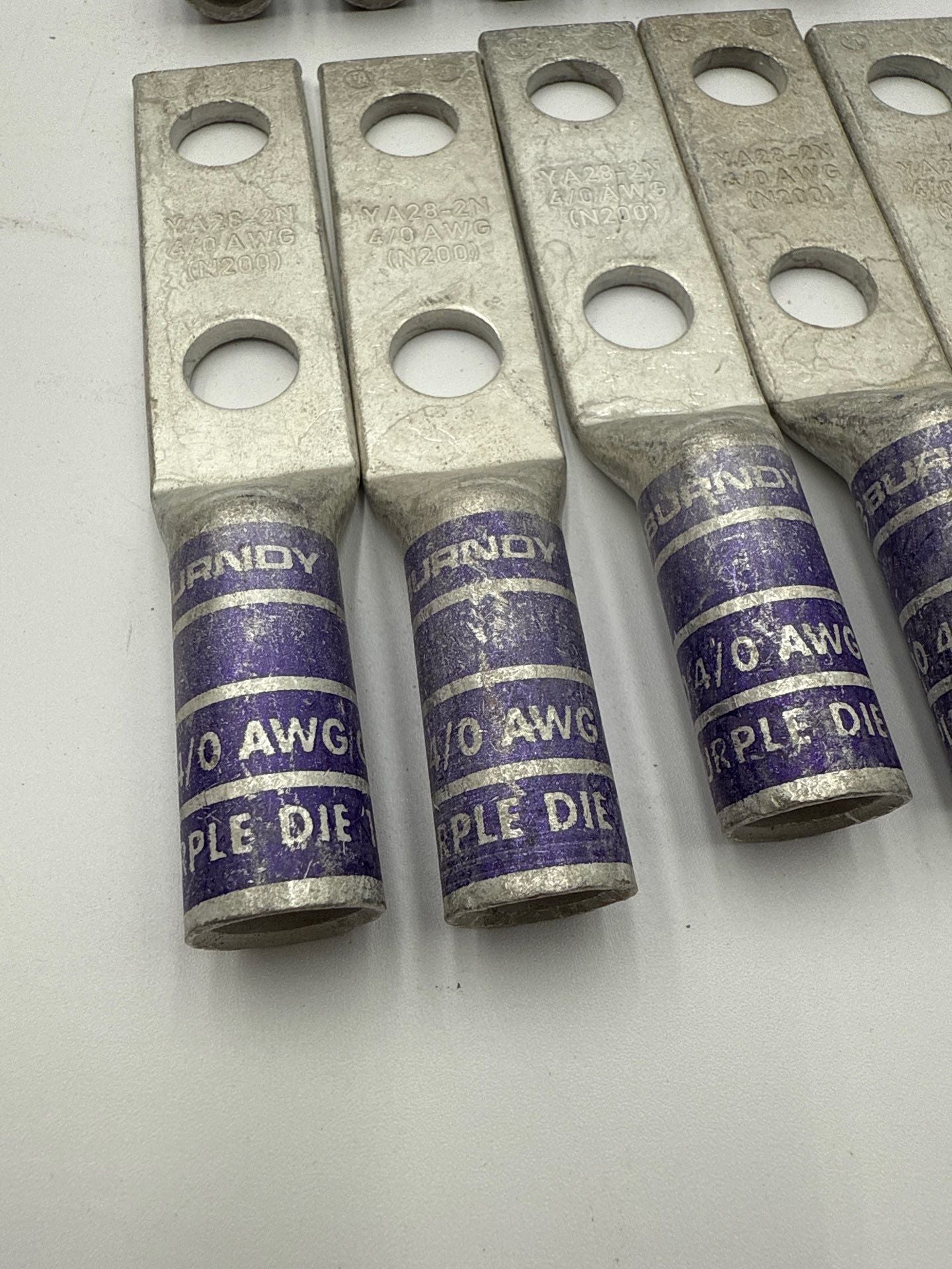 Burndy YA282N Compression Cable Lug 4/0 CU 2-Hole Long 1/2 10PC Lot