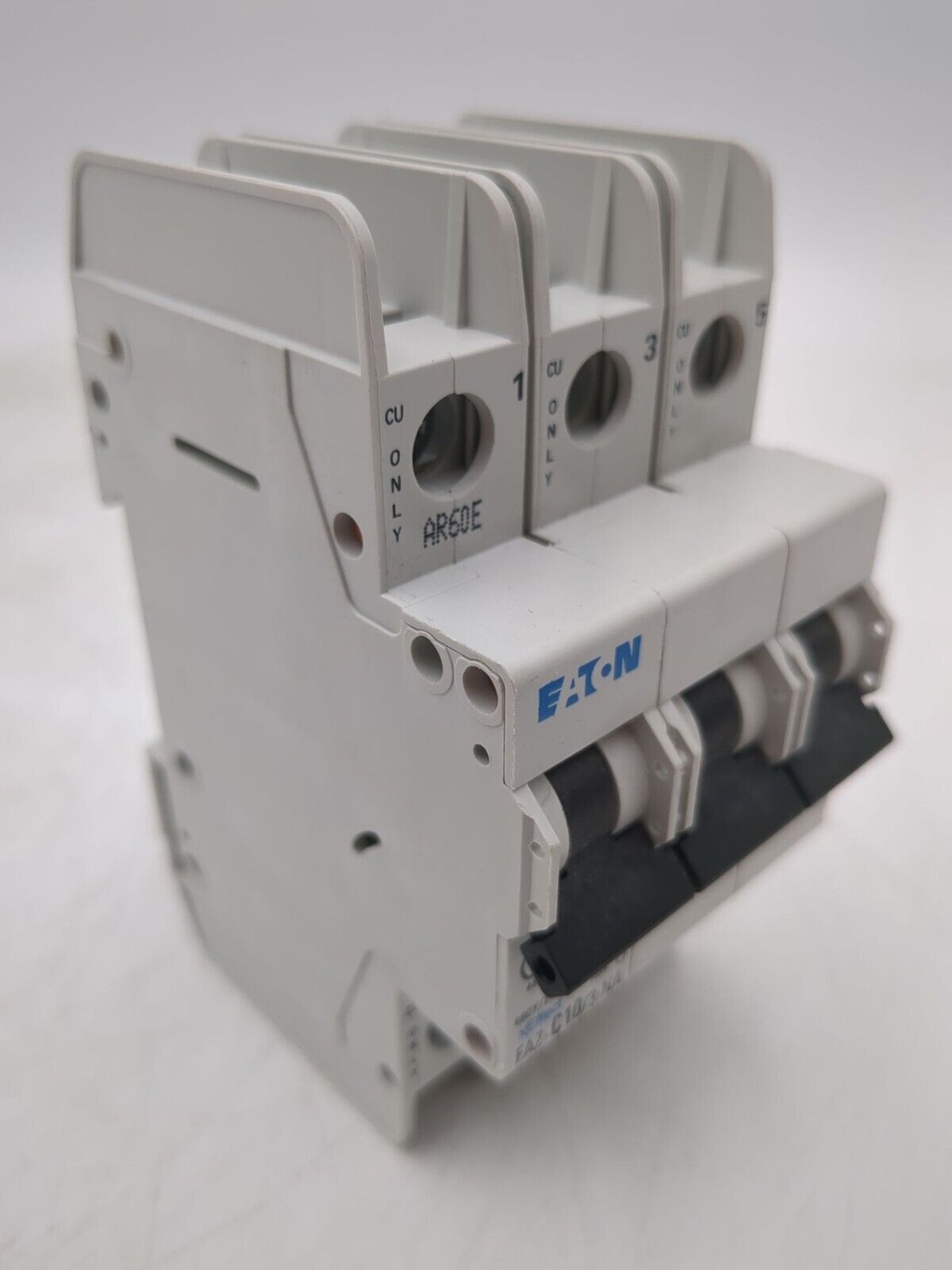 FAZ-C10/3-NA EATON CORPORATION CIRCUIT BREAKER, MINIATURE, THERMAL MAGNETIC, CURRENT-LIMITING, 10 AMP, 3 POLE, 480Y / 277 VAC / 96 VDC, C-CURVE, 35 MM DIN RAIL MOUNT