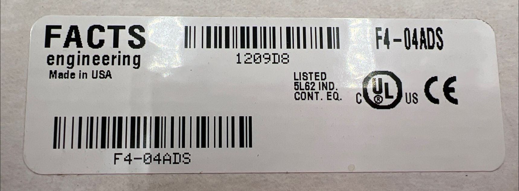 Facts Engineering F4‑04ADS DL405 4‑Channel Analog Input Module 0-20 mA/0-10 V 12‑Bit