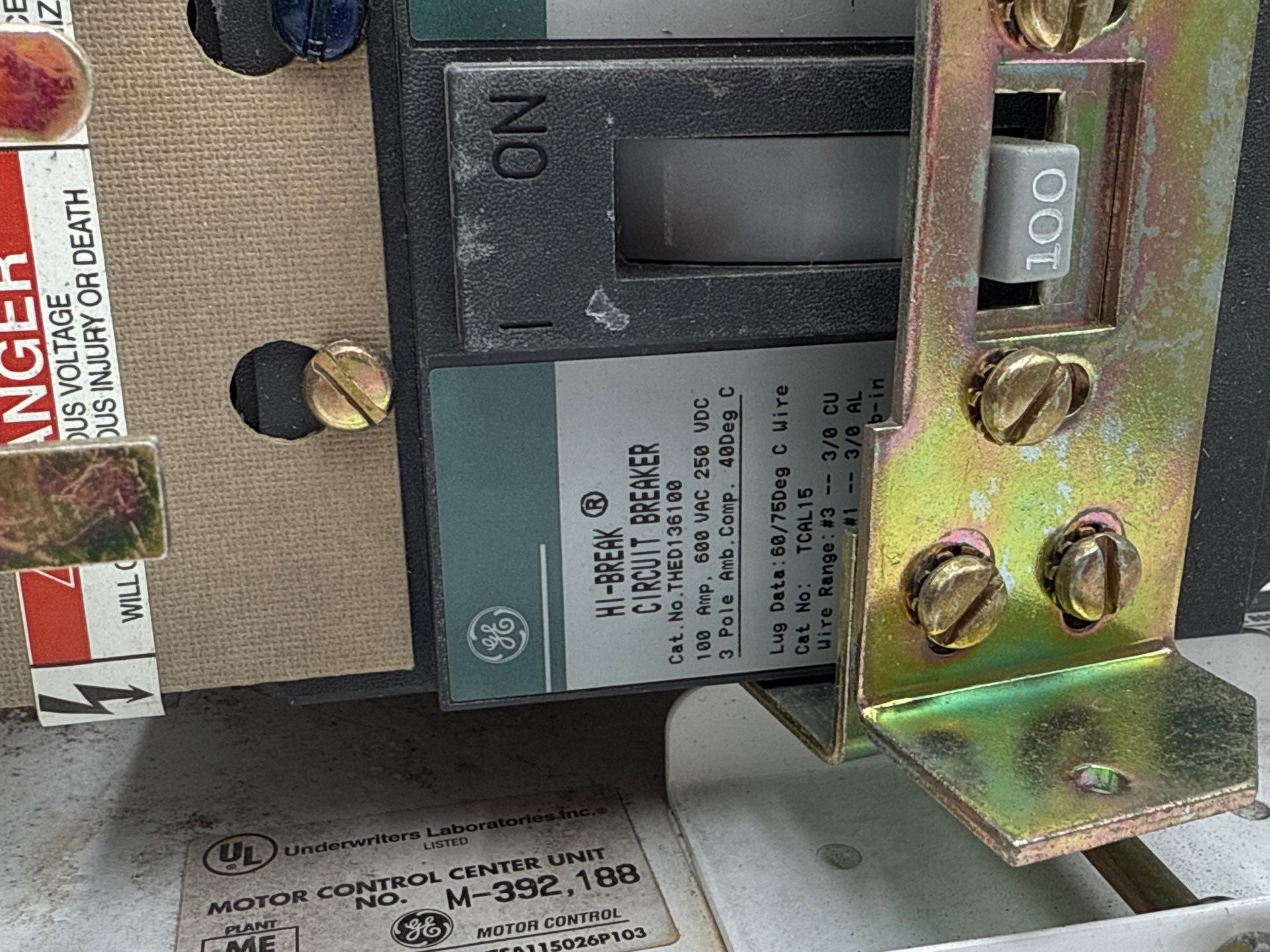 GE 8000 6" 100A MCC Feeder Bucket 100 Amp Breaker THED136100