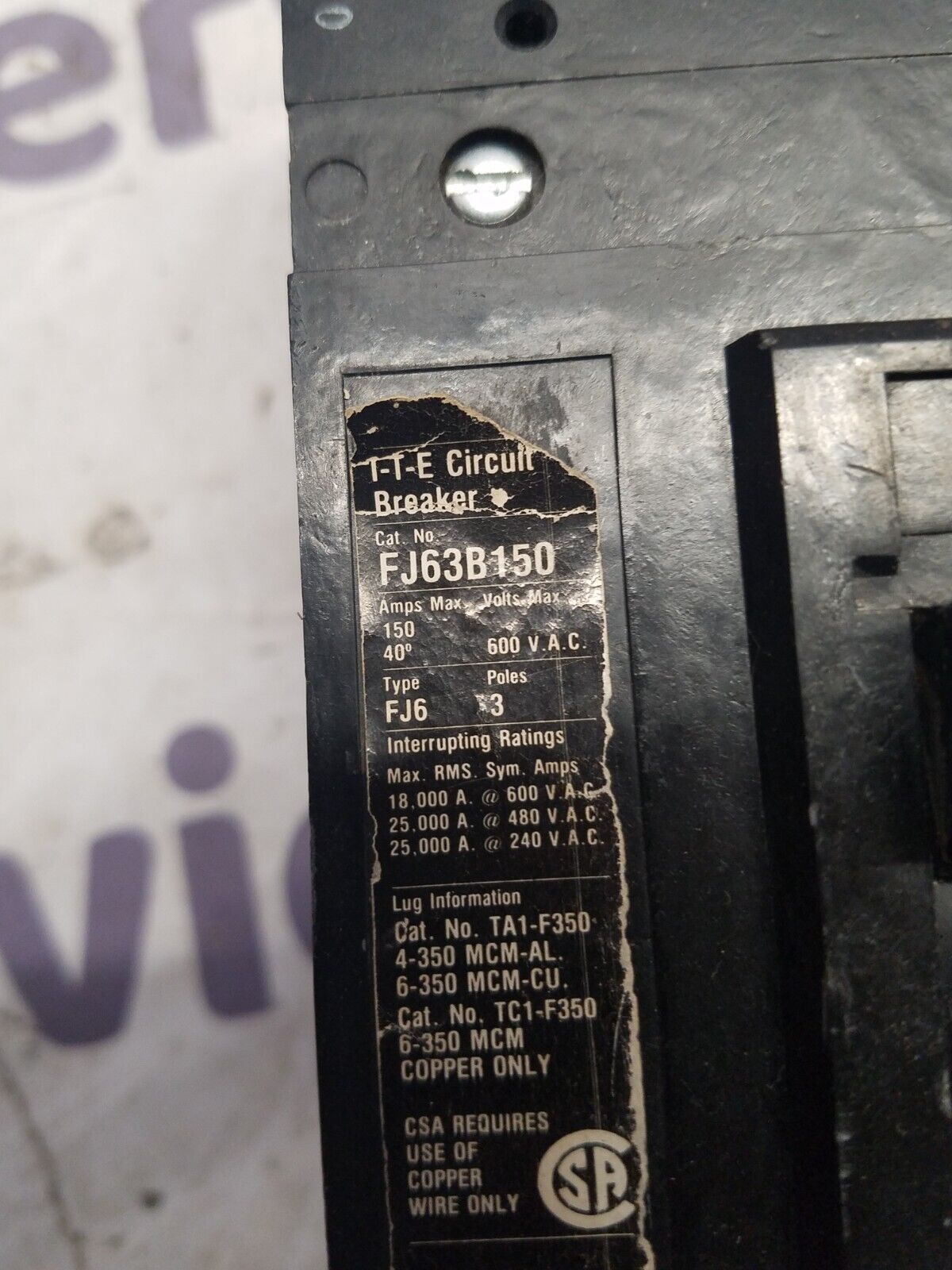 Siemens FJ63B150 3 pole 150 Amp 600 volt