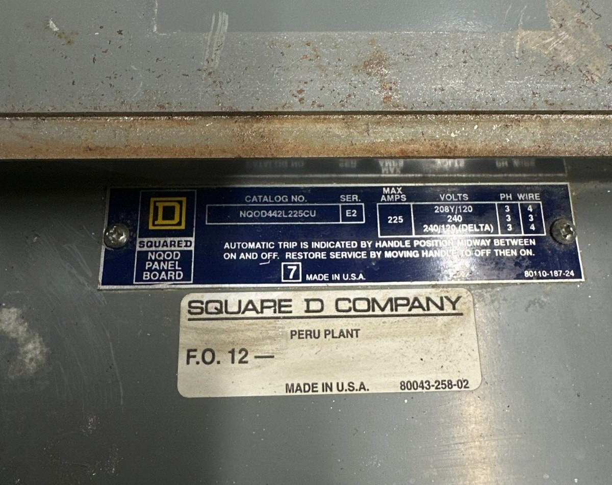 SQD NQOD442L225CU Panelboard 225A 208Y/120V 3PH 4W 42 CIR 225 Amp MLO Main Lug P308 Used