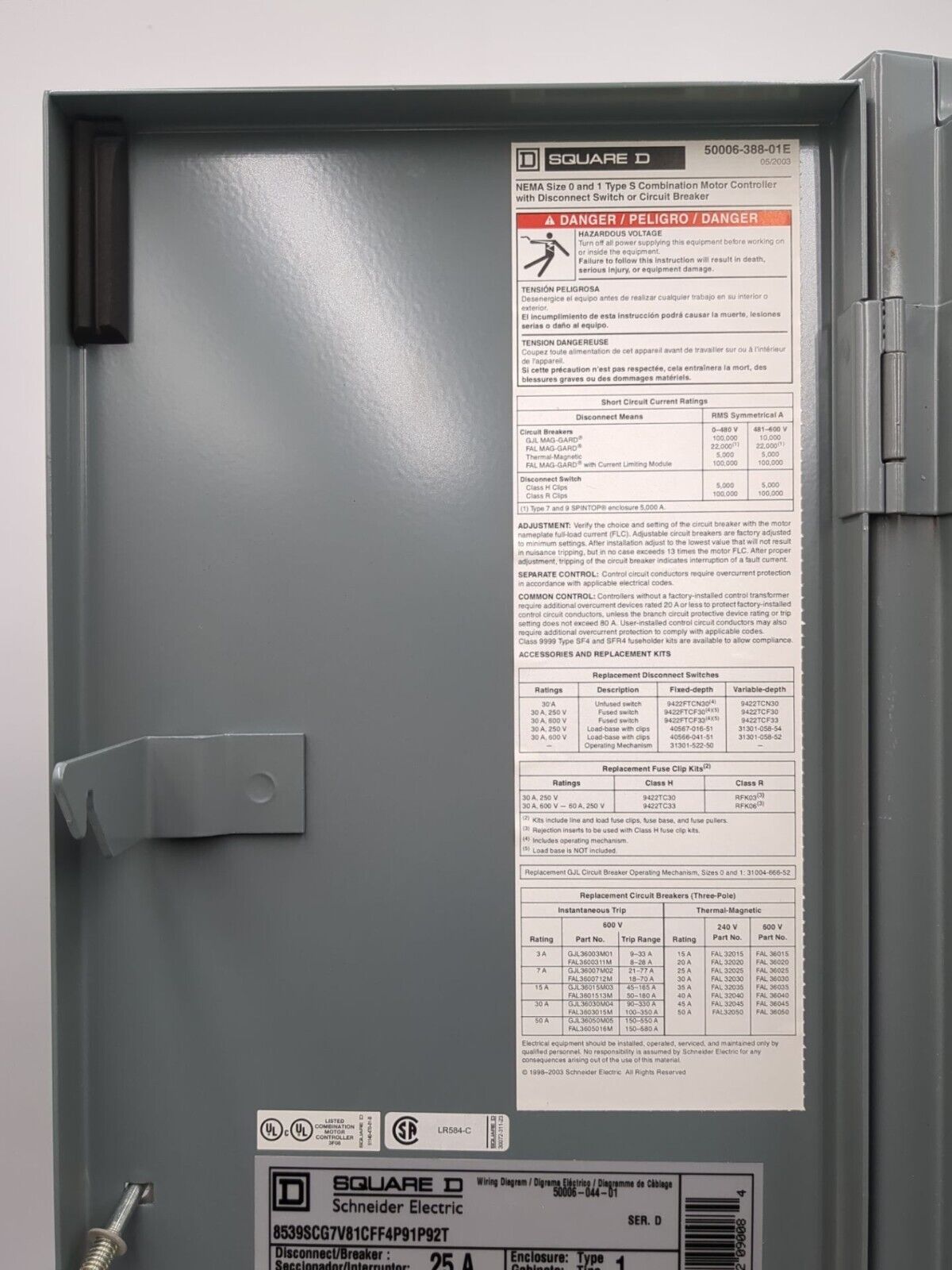 Square D 8539SCG7V81CFF4P91P92T, NEMA 1, AC Combinaton Motor Starter,