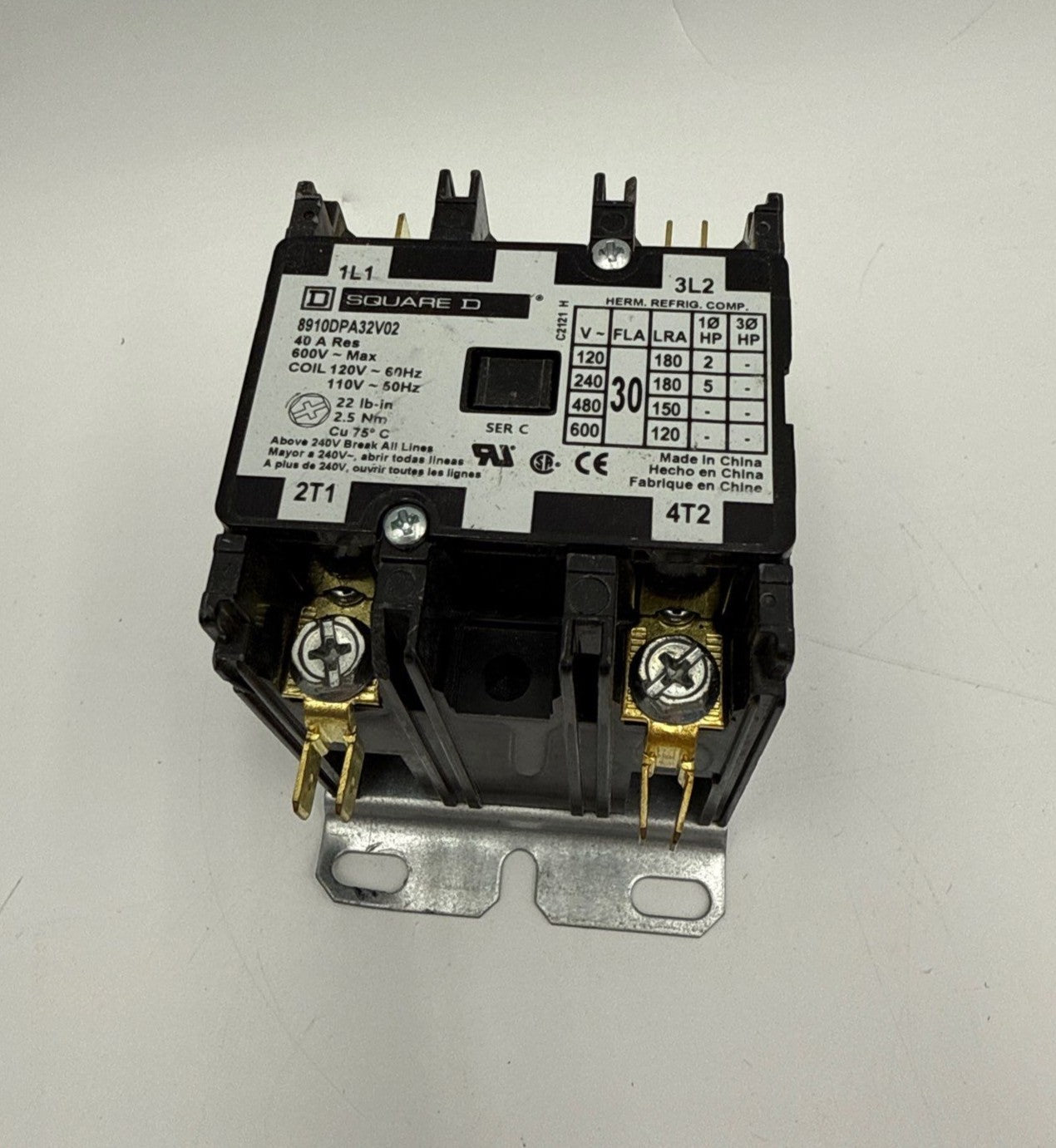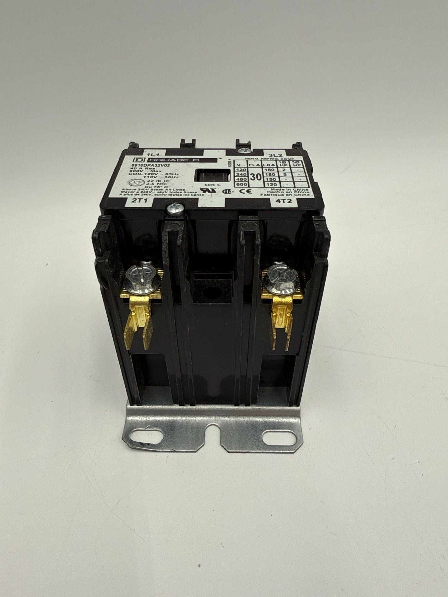Square D 8910DPA32V02 Definite Purpose Contactor 30FLA 2P Open Coil 110/120V