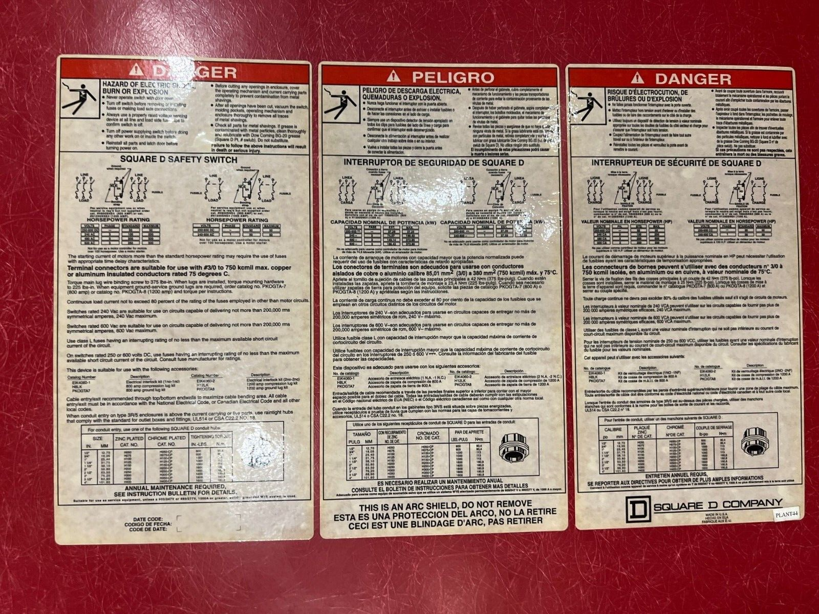 SQD H367 Safety Disconnect Switch 800A 3P 600V Type 1 Indoor Enclosure
