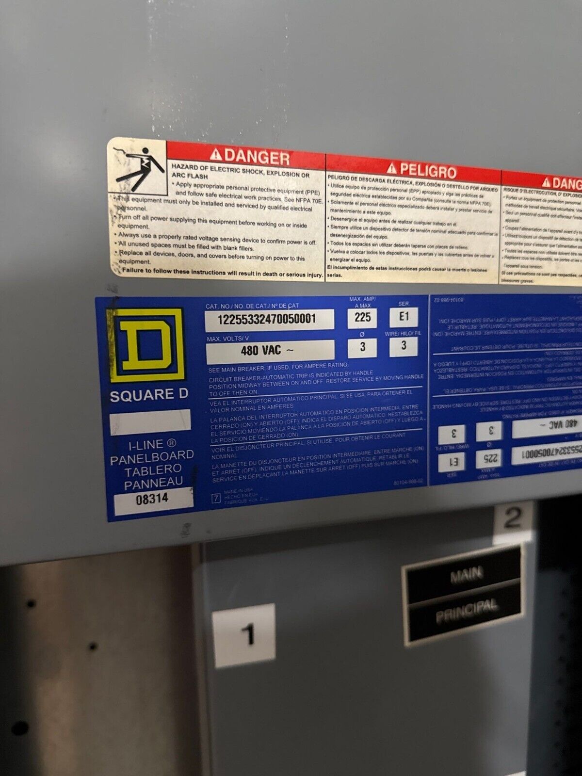 Square D HCM I-Line Panelboard 225A 480V 3PH 3W 30 Circuit 3R Outdoor Encl MCB P610 Used