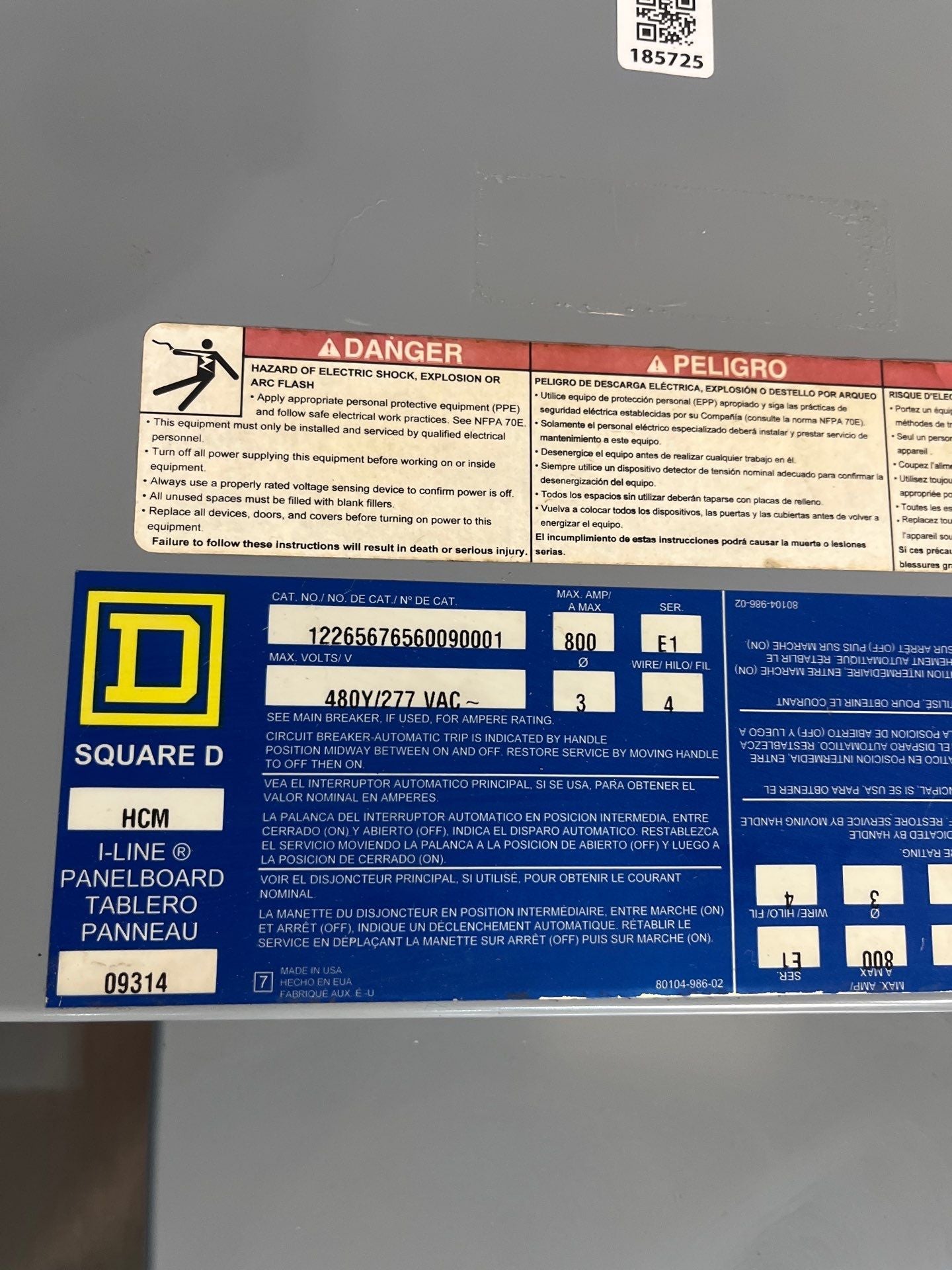 Square D HCM I-Line Panelboard 800A 480/277V 3PH 4W 66 Space MLO Indoor Encl HC3291B Used