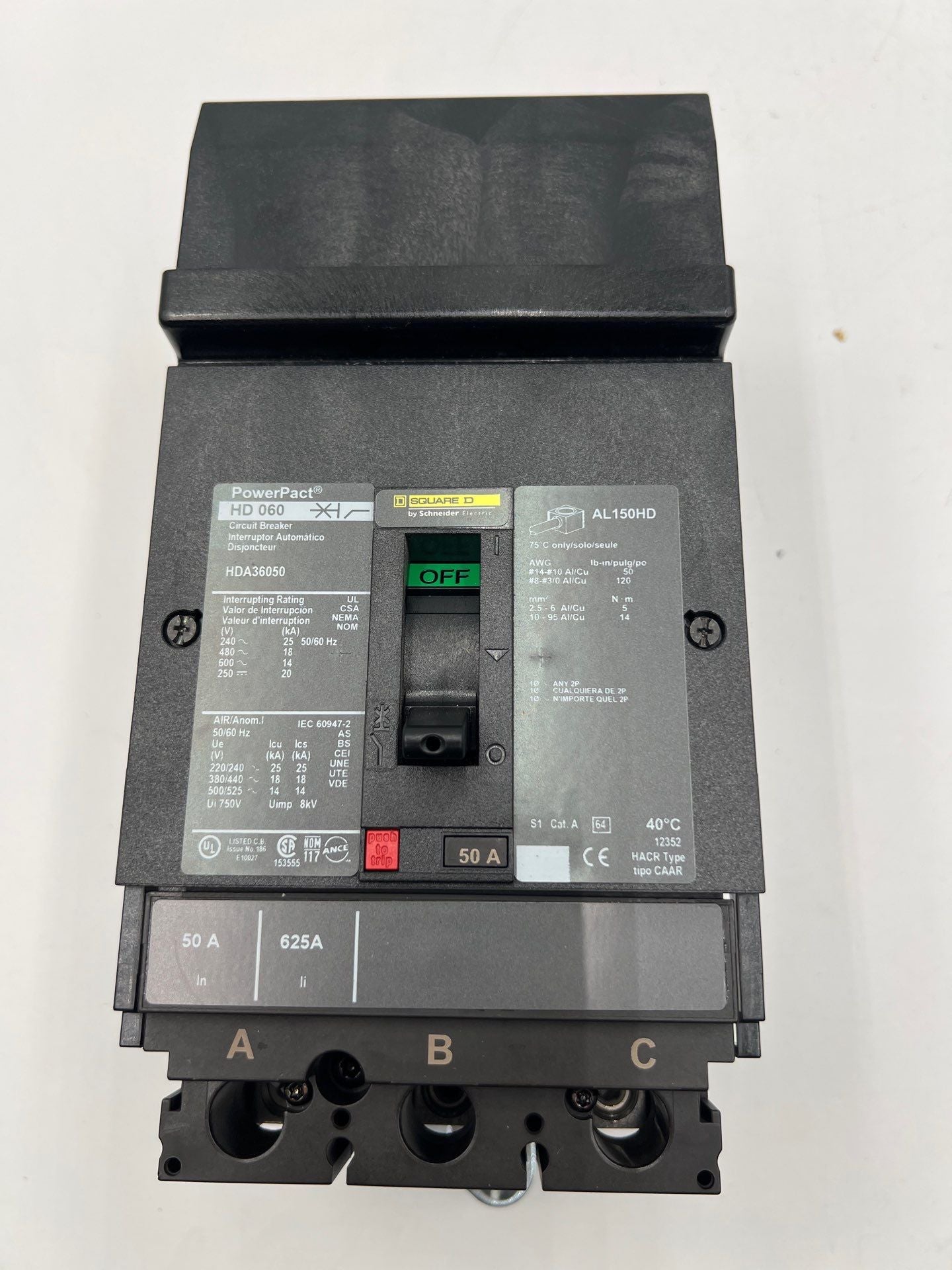 Square D HDA36050 I-Line Circuit Breaker 50A 600V 3P 50 Amp HDA 3 Pole