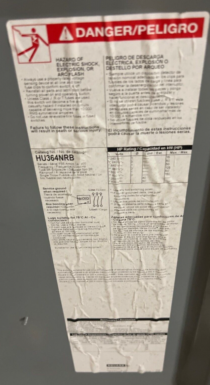 SQD HU364NRB Safety Disconnect Switch 200A 3P 600V 3R Outdoor Enclosure