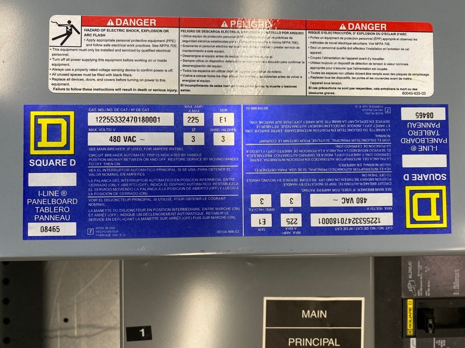 Square D I-Line Panelboard 225A 480V 3PH 3W 3R Outdoor Encl 30 Cir MCB JLA36225 P557 Used