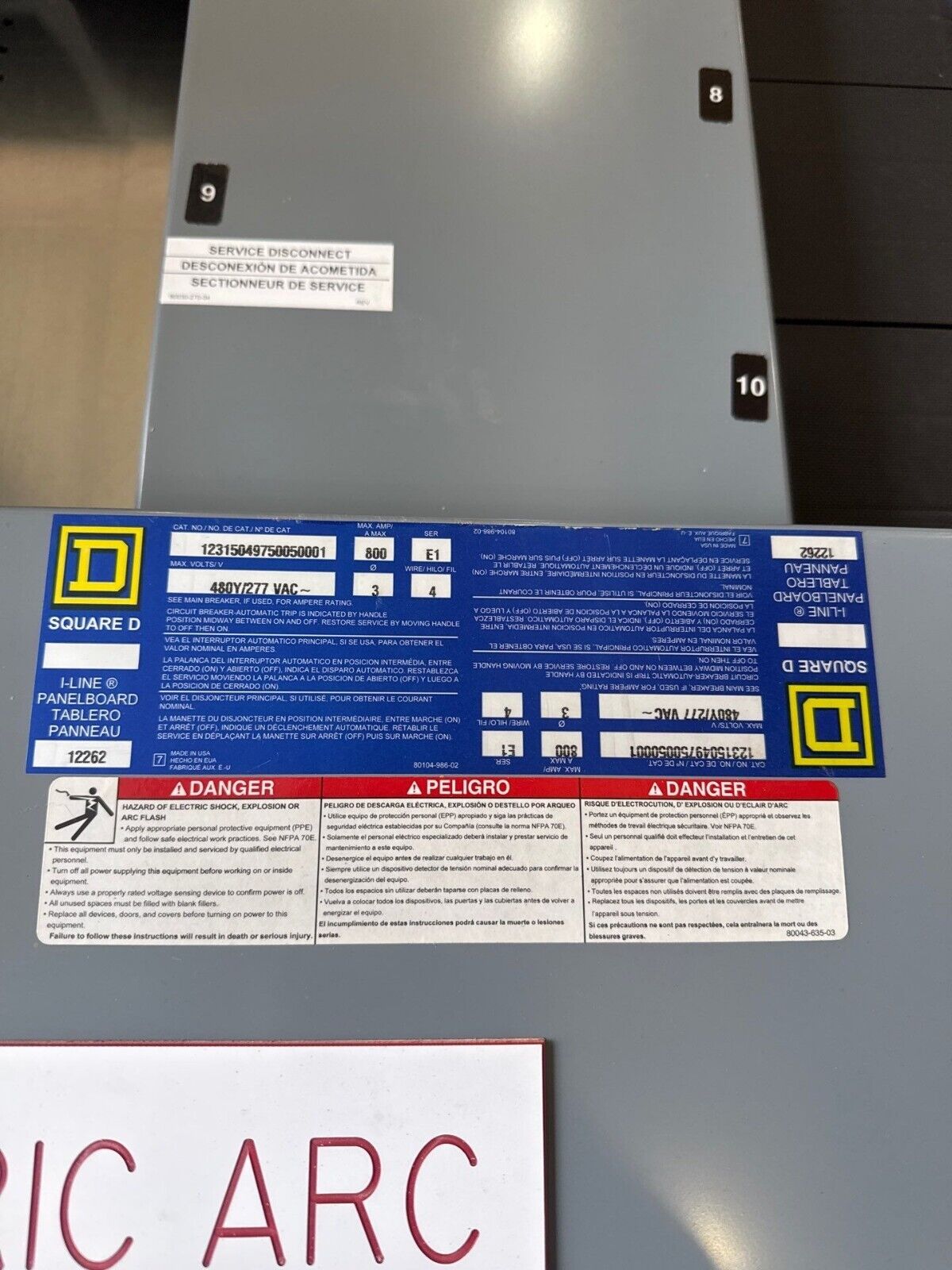 Square D I-Line Panelboard 800A 480/277V 3PH 4W 30 Circuit MLO Indoor Encl P661 Used