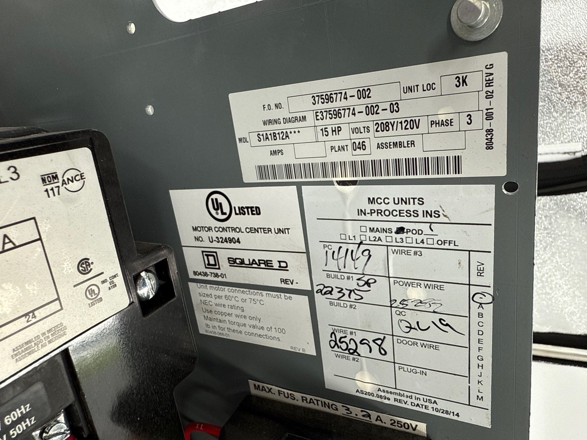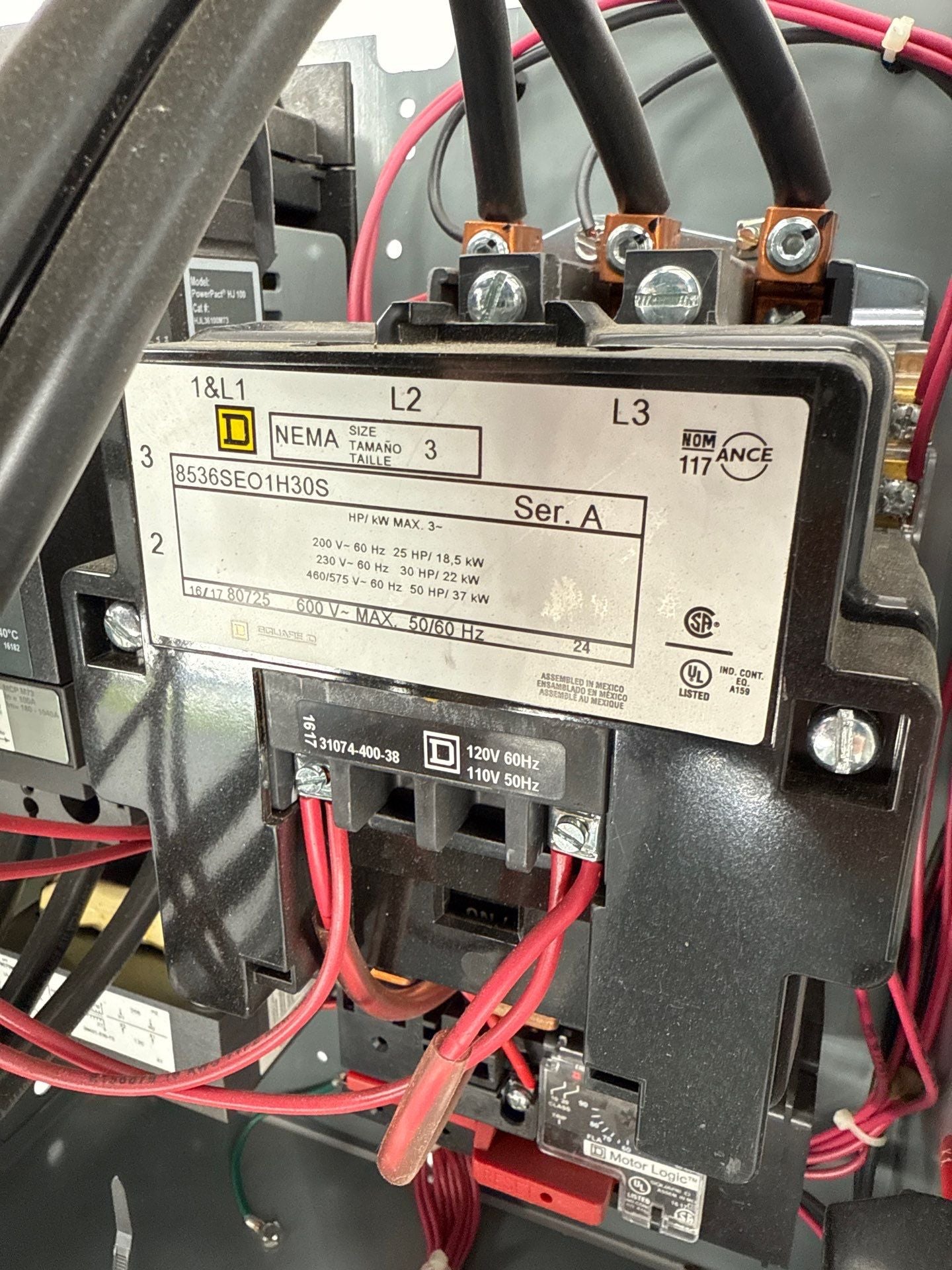 Square D Model 6 18" 100A Combo MCC Bucket 8536SEO1H30S Size 3 Starter HJL36100M73 Breaker
