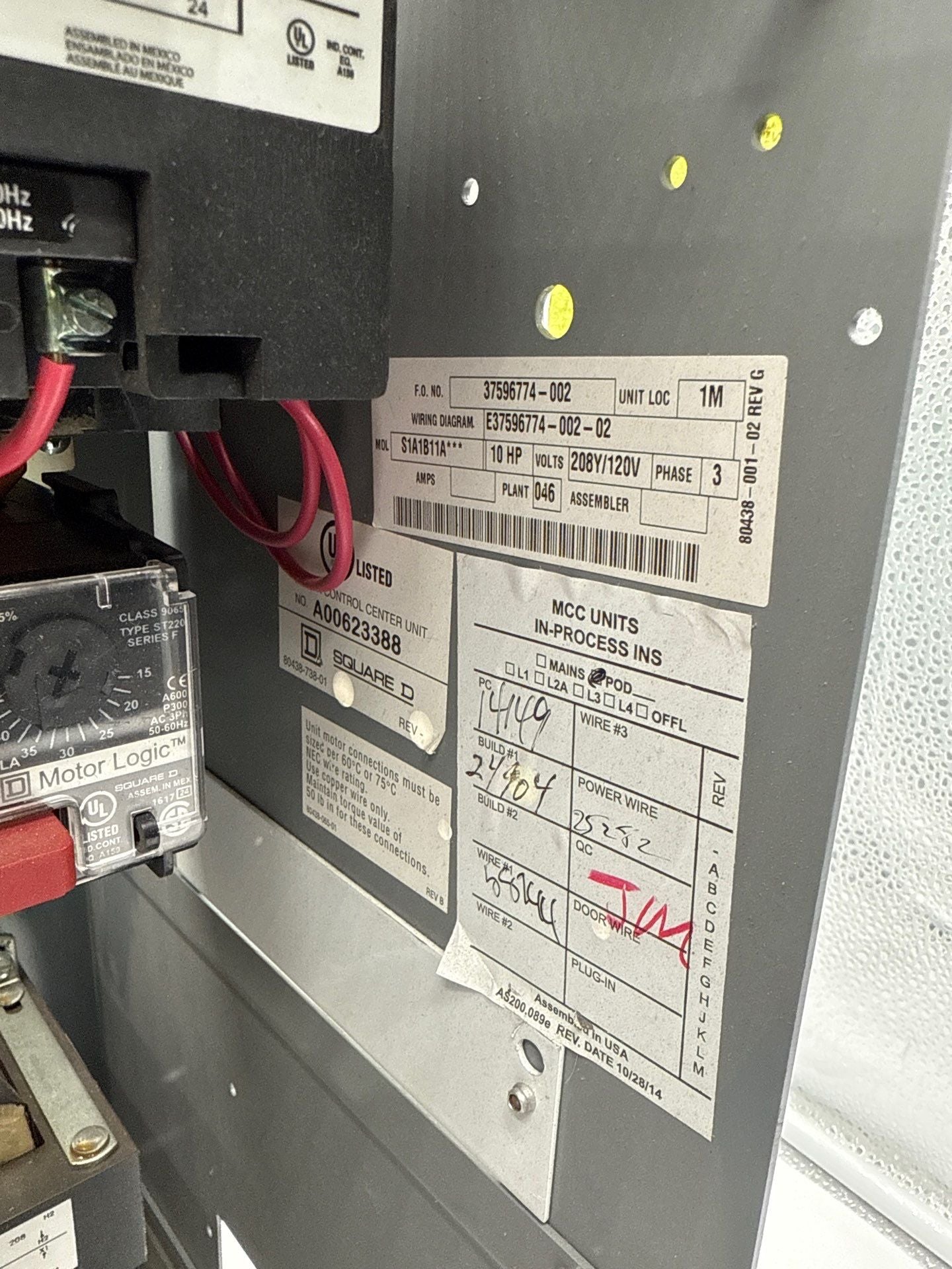 Square D Model 6 18" 50A Combo MCC Bucket Size 2 HJL36050M72 Used