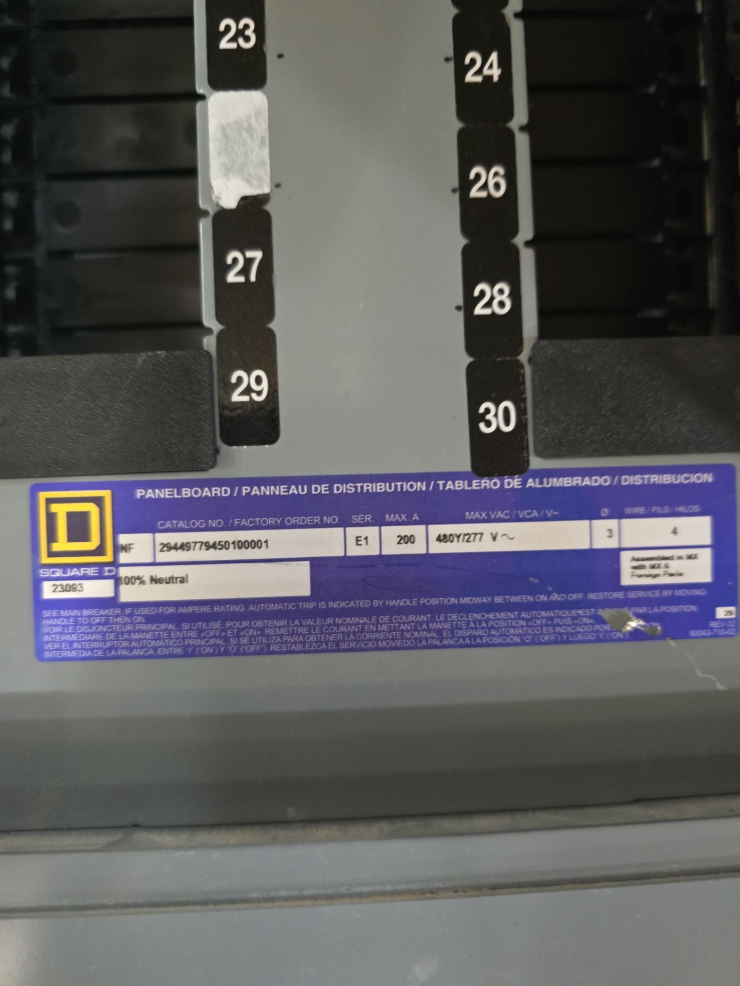 Square D NF Panelboard 200A 480/277V 3PH 4W 200 Amp Panel MLO 30 Circuit Indoor