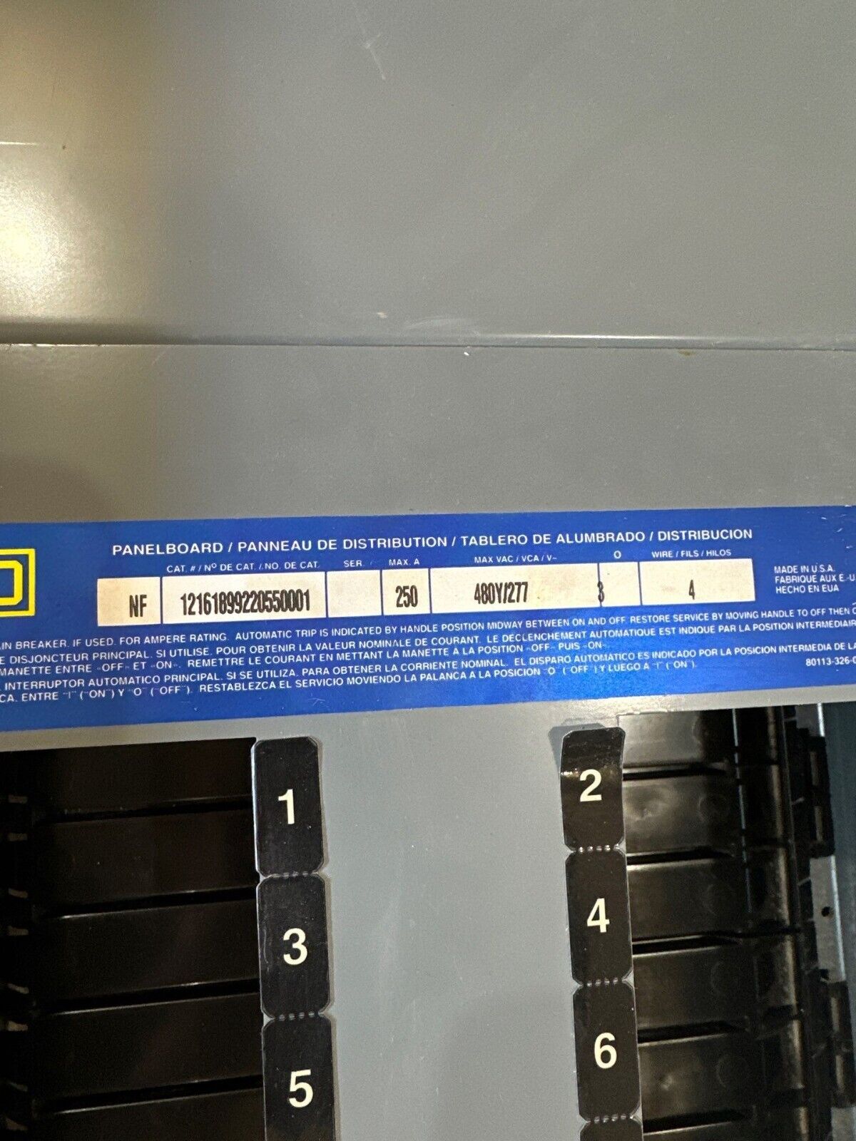 Square D NF Panelboard 250A 480Y/277V 3PH 4W MCB KAL36250 Subfeeder 42Circuit Nema 1