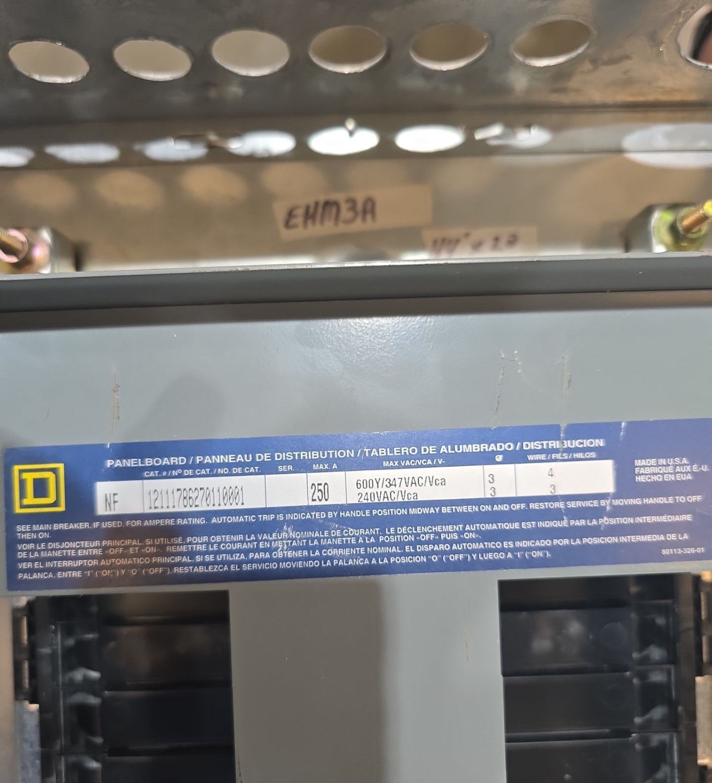 Square D NF Panelboard 250A 600/347V 3PH 4W 250 Amp MLO Panel 42 Cir Indoor