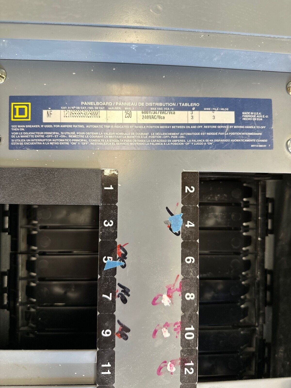 Square D NF Panelboard 250A 600Y/347V 3PH 4W 42 Circuit Indoor Encl 250 Amp MLO P355 Used