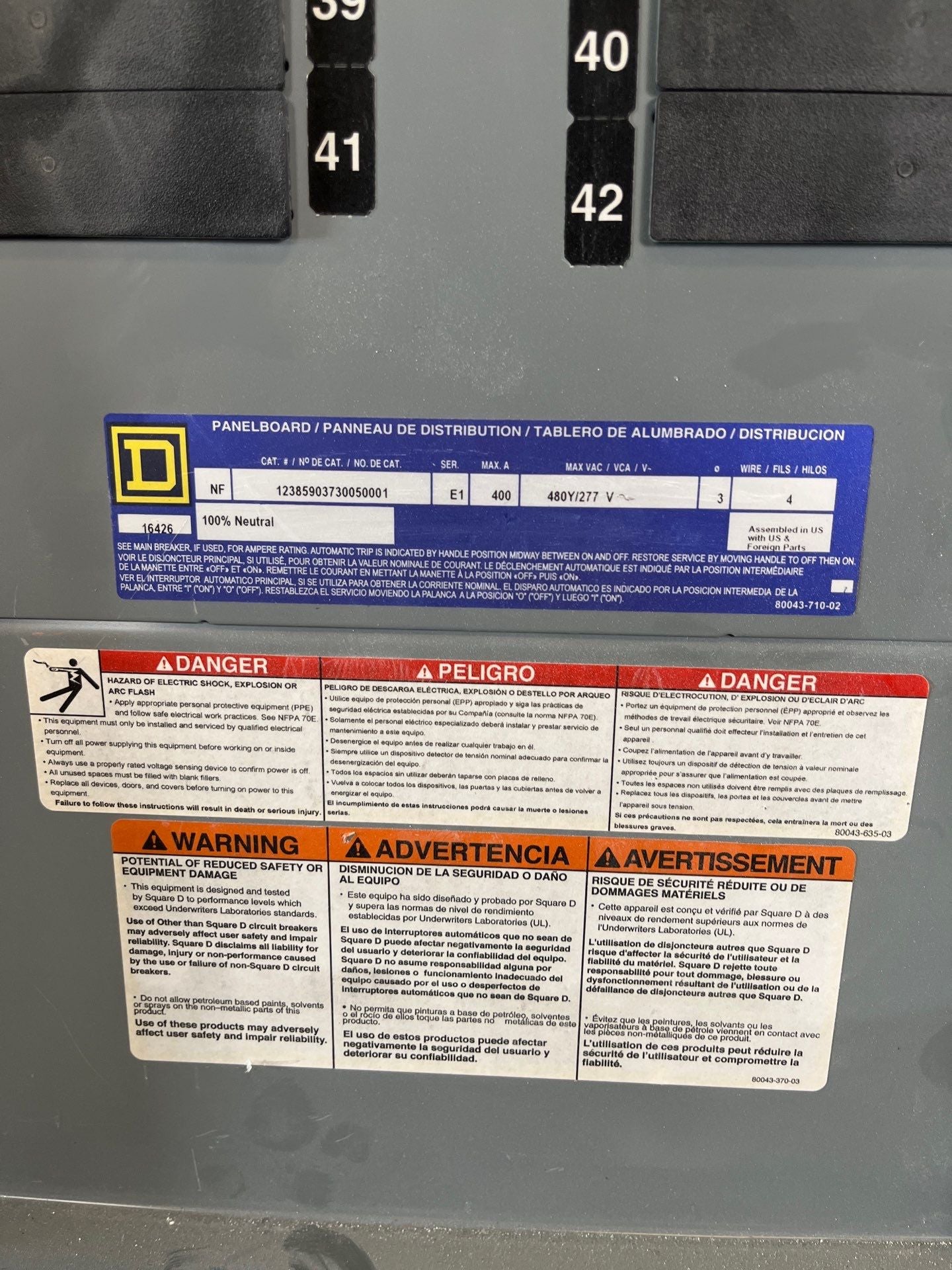 Square D NF Panelboard 400A 480/277V 3PH 4W 42Cir MLO Indoor Encl MH74 Used