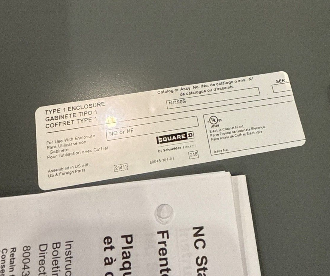 Square D NQ Panelboard 250A 208/120V 3PH 4W 42 Circuit Main JDP36250 MCB Indoor Enclosure MH50, NC50S 50 x 20 x 6