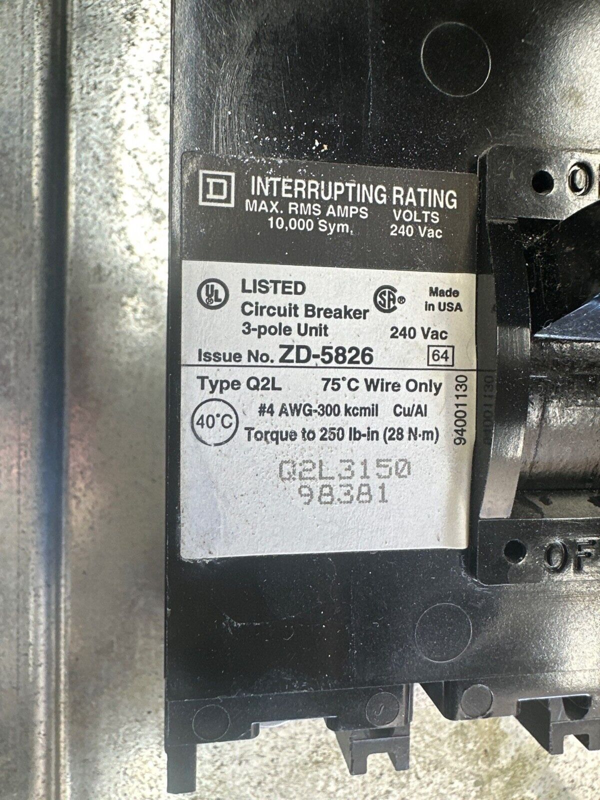 Square D NQOD Panelboard 225A 208/120V 3PH 4W Indoor Encl MCB 42 Circuit Q2L3150 P377 Used