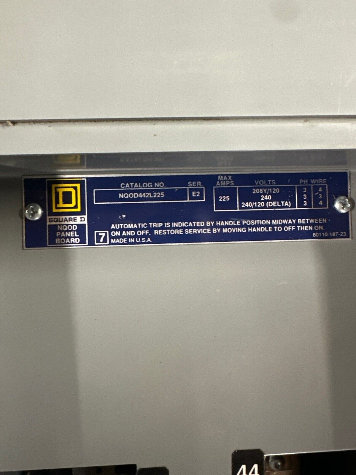 SQUARE D NQOD442L225 MLO Panelboard 225A 208Y/120V 3P 4W Main Lug 42 Circuit P297 Used