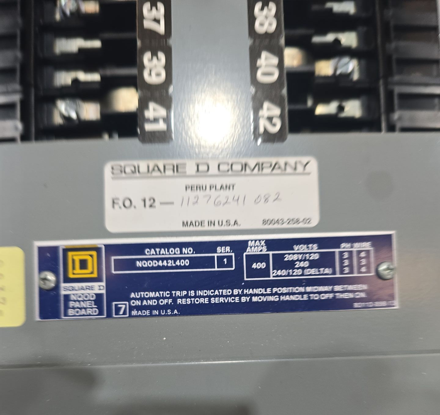 Square D NQOD442L400 Panelboard 400A 208Y/120V 3PH 4W 42 Cir 400 Amp MLO Panel Used