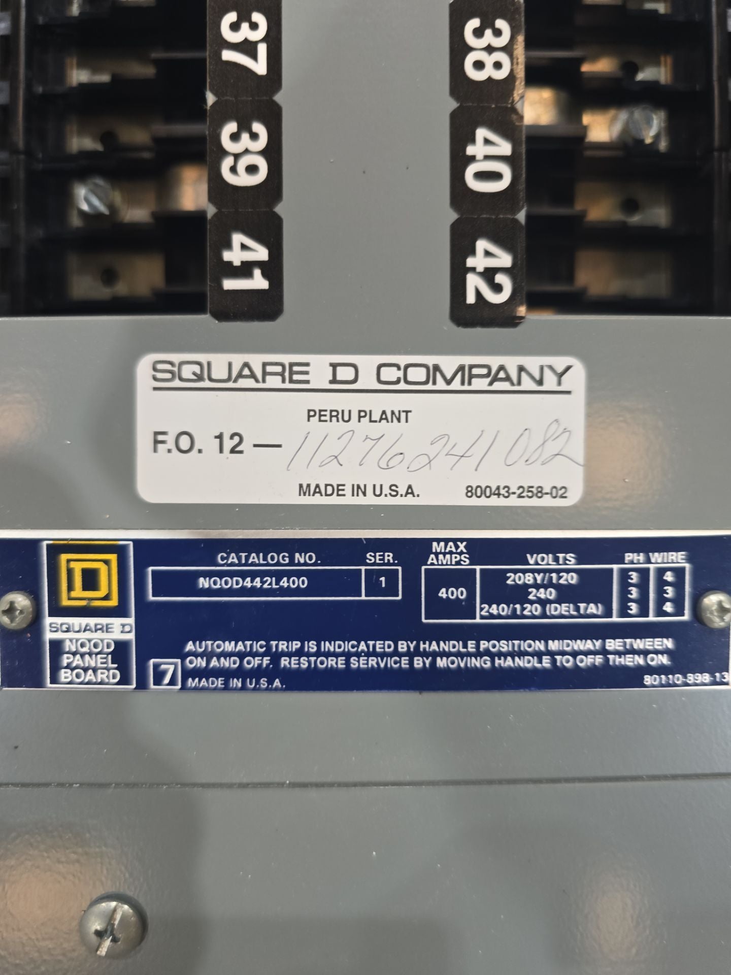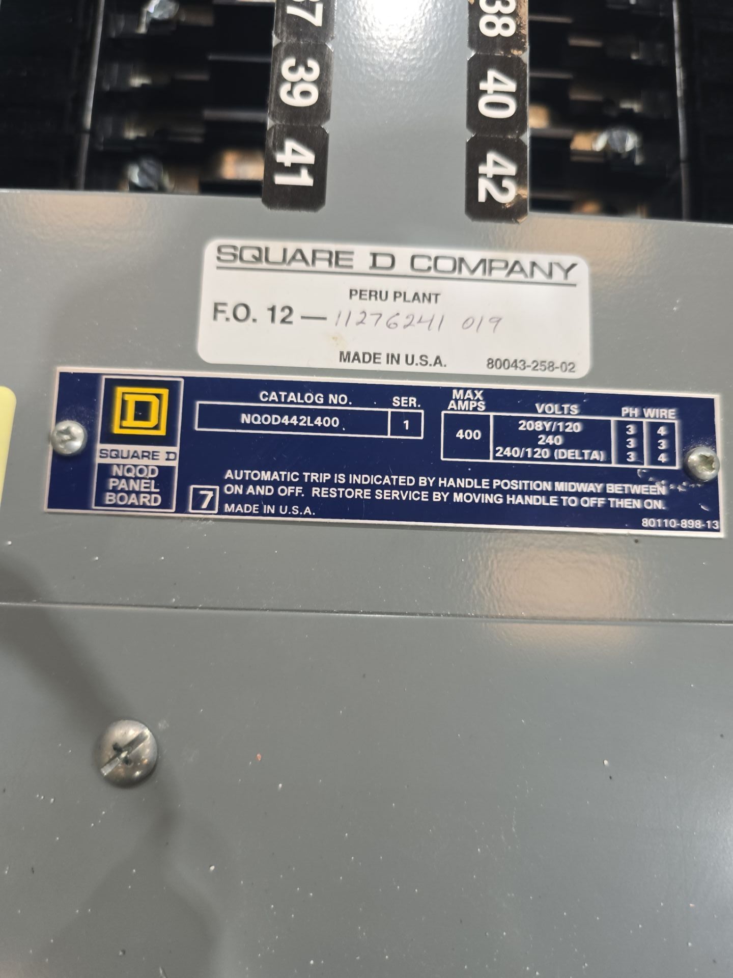 Square D NQOD442L400 Panelboard 400A 208Y/120V 3PH 4W 42 Cir 400 Amp MLO Panel MH56BE