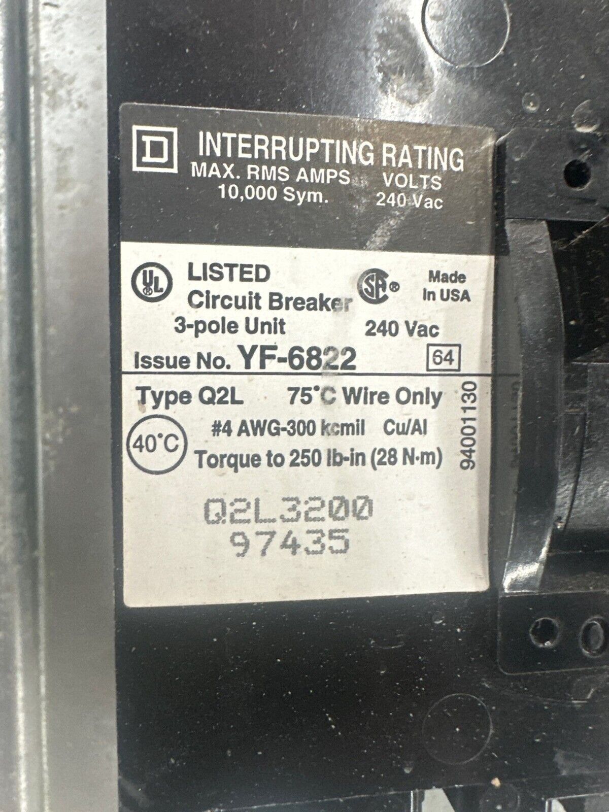 Square D NQOD442M225 NQOD Panelboard 225A 208Y/120V 3PH 4W Main MCB Q2L3200 200A P414 Used