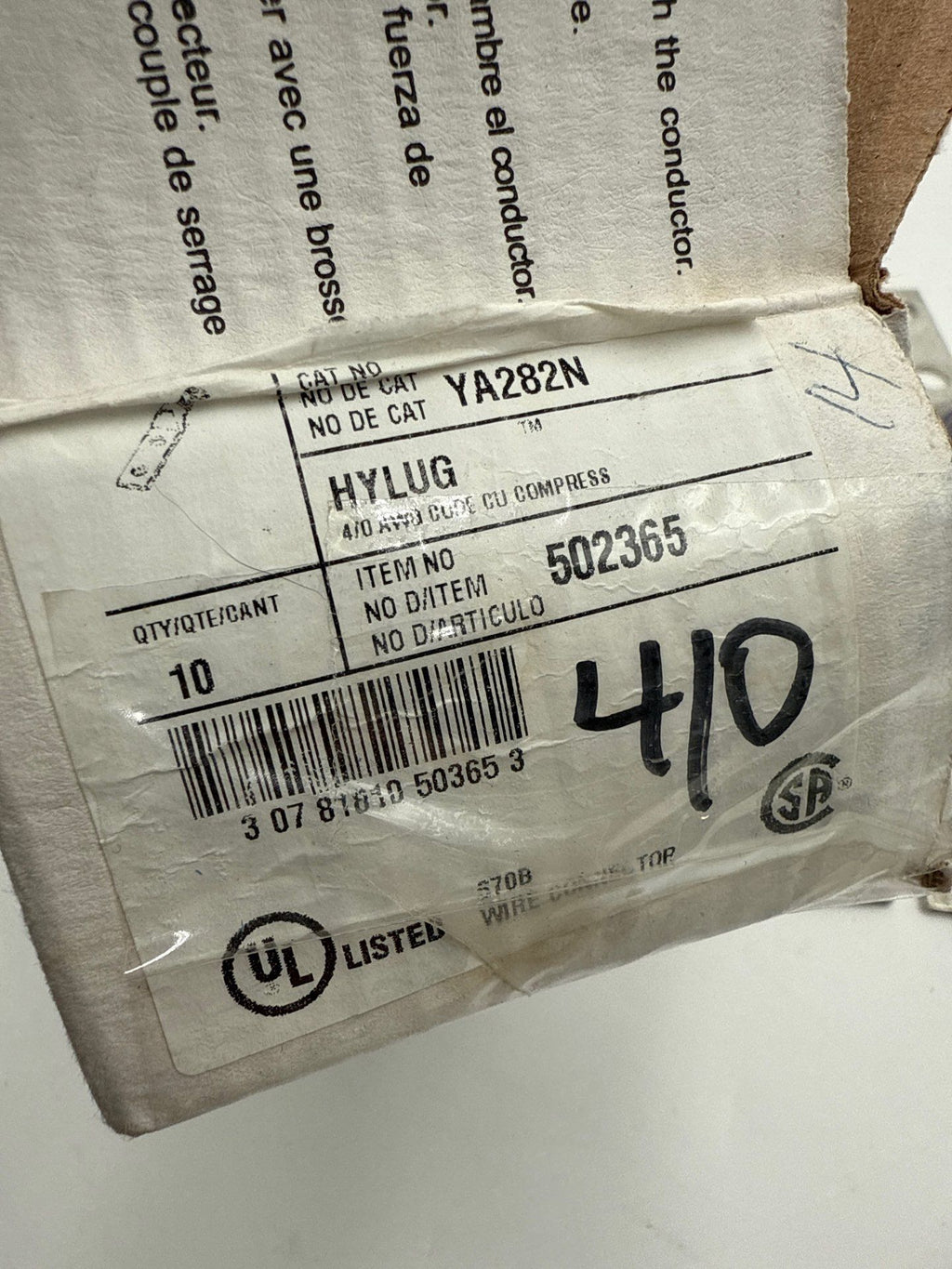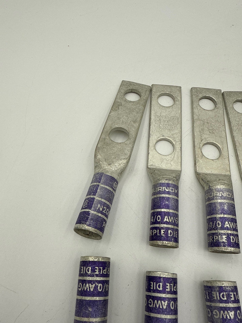 10PC Burndy YA282N 2-Hole 1/2'' Stud 4/0 AWG Long Barrel Copper Compression Lug