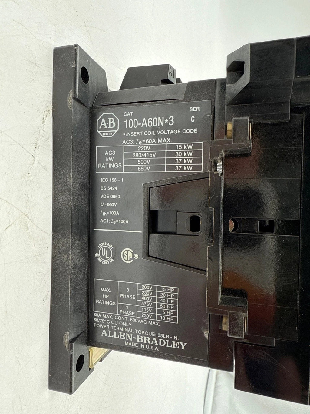 Allen Bradley 100-A60ND3 Contactor 60A 3P 600V 3PH A60 Coil 110/120V