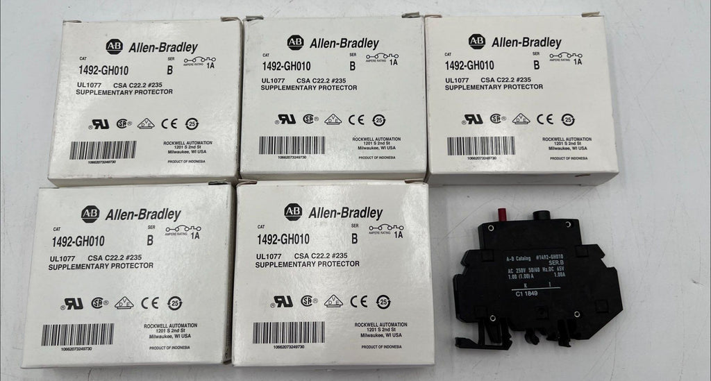 Allen-Bradley 1492-GH010 Mini Circuit Breaker 1A 1P 250VAC 65VDC DIN Rail Lot of 5 New