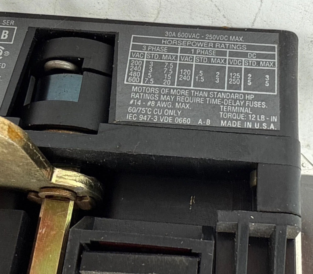 Allen Bradley 194R-NJ030P3 Ser B Fused Disconnect Switch 30A 3P 600V 3PH 30 Amp