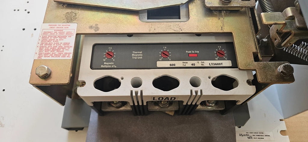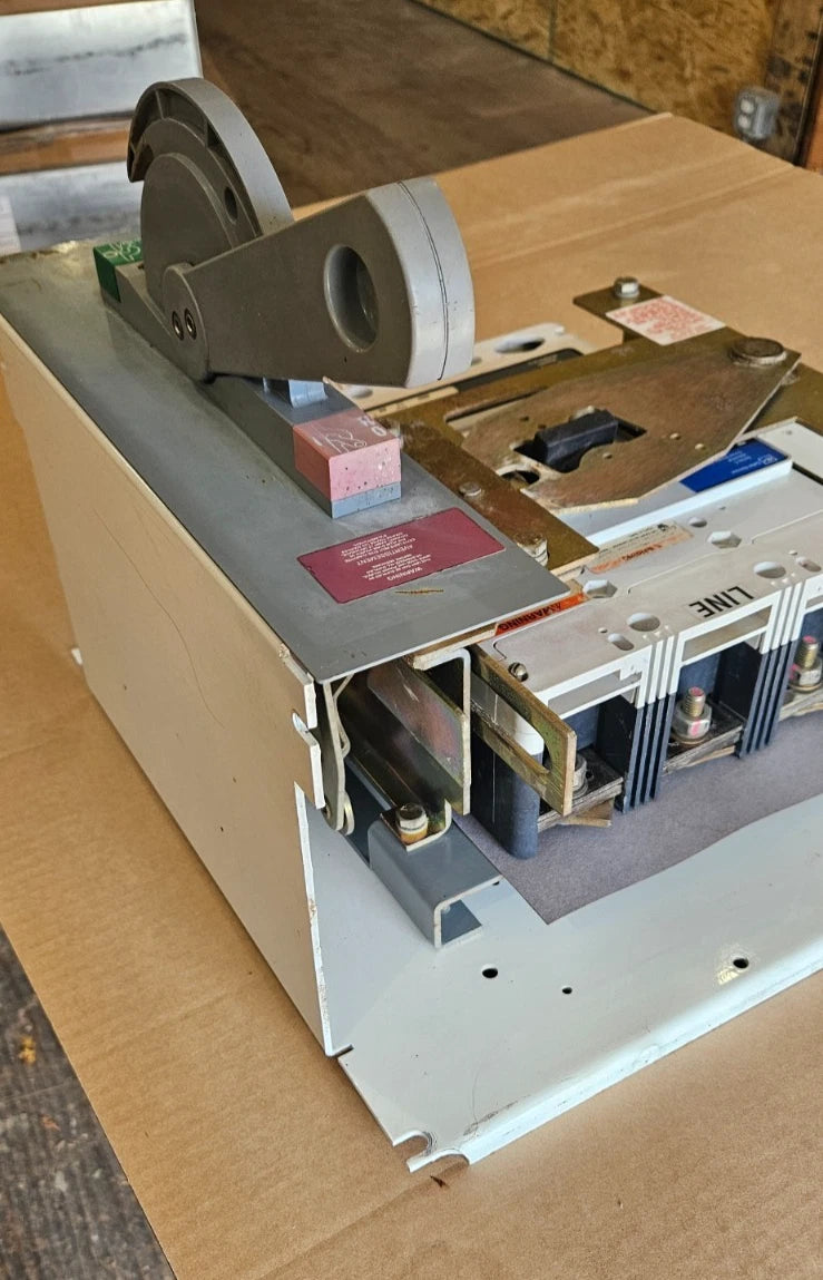 Comes with 3 pole 600 Amp 600 Volt HDL3600 Eaton Cutler-Hammer Circuit Breaker.