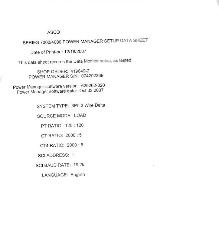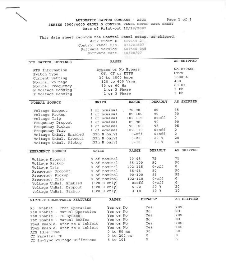 ASCO 1600 Amp ATS Automatic Transfer Switch 480v 277v 3 Phase Indoor. Condition is