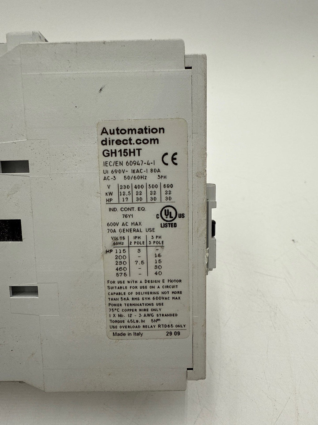 Automation Direct GH15HT Contactor 80A 3P 600V Coil 110-120V GH15HT-3-00A