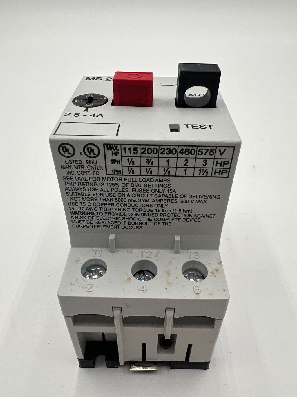 AutomationDirect MS25-400 Manual Motor Protector 2.5-4.0A adjustableThermal Overload Protection 45mm Frame