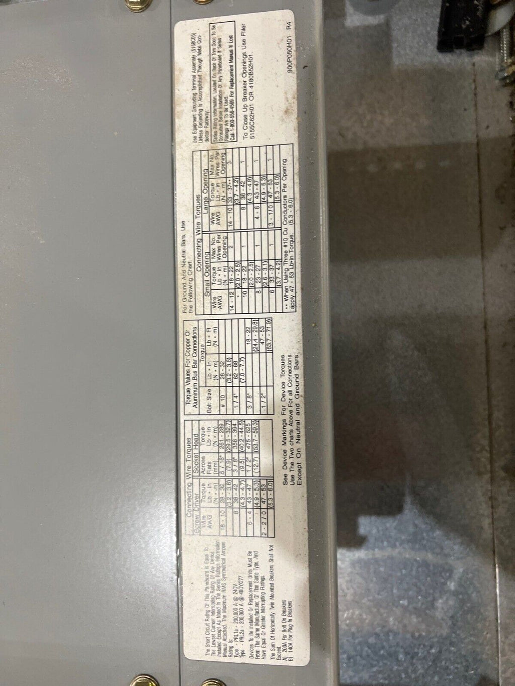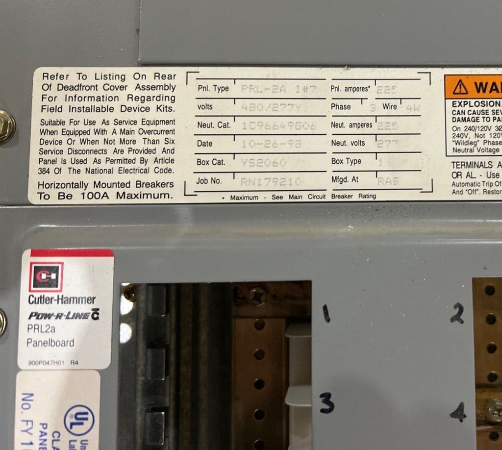 CH PRL2A Panelboard 225A 480/277V 3PH 4W 42 Circuit MLO Main Lug Indoor 225 Amp P679 Used
