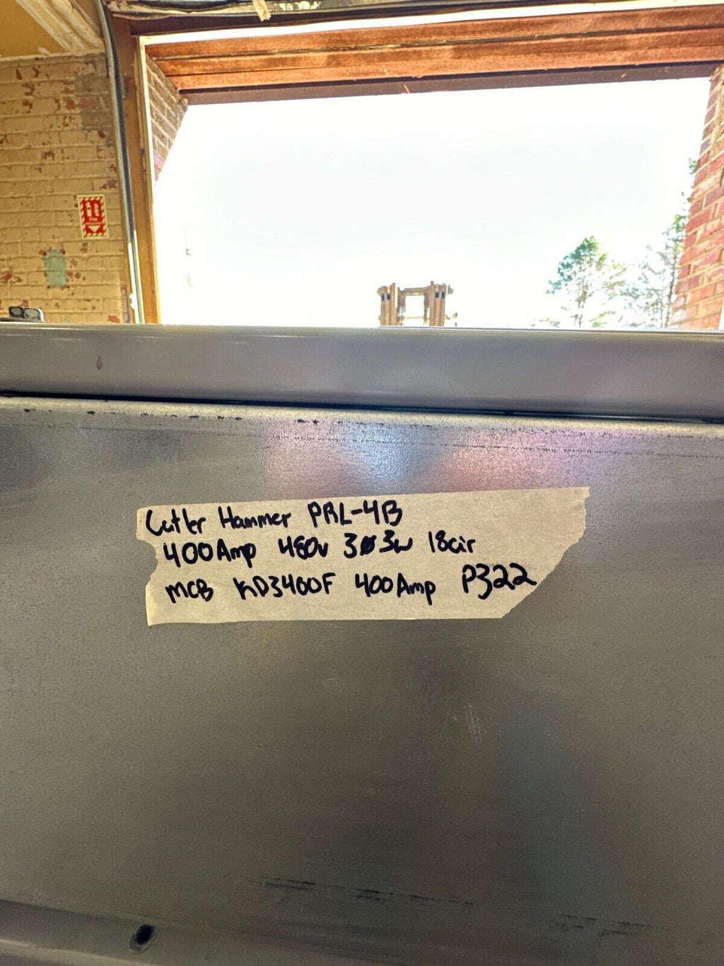 Cutler Hammer PRL4B Pow-R-Line Panelboard 400A 480V 3PH 3W 18 Cir MCB Indoor Encl BX2457 Box BX2457: 57.5 Inch Height x 24 Inch Width x 11.31 Inch Depth Main Breaker: KD3400F P322