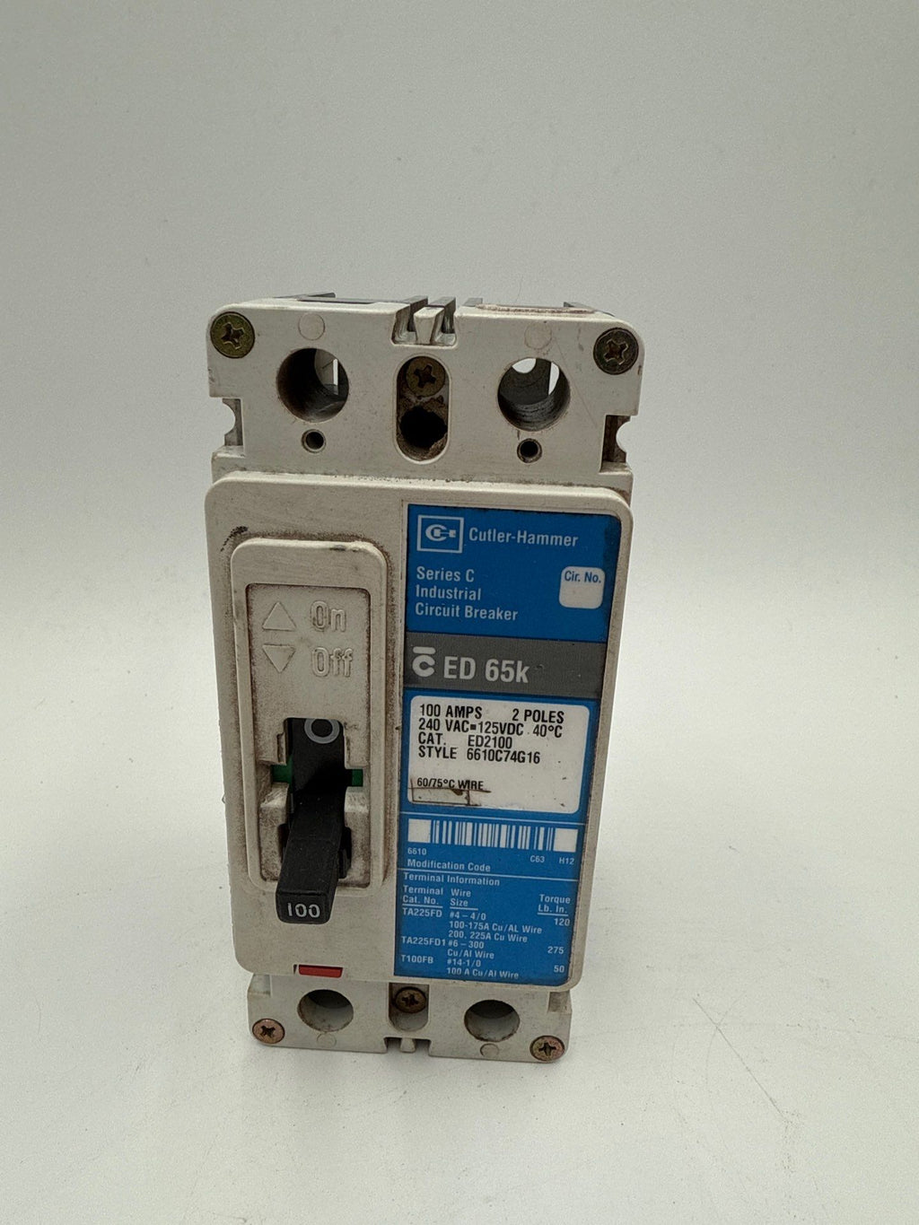 Cutler Hammer ED2100 Circuit Breaker 100A 2P 240V ED 65k 100 Amp 2 Pole