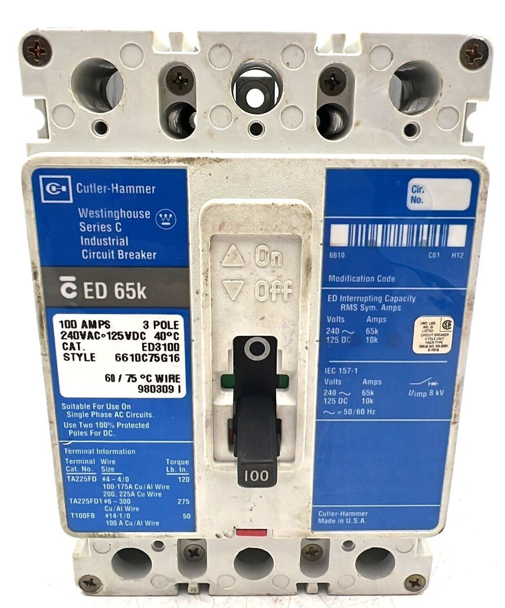 Cutler-Hammer ED3100 100A 240V 3 Pole Circuit Breaker