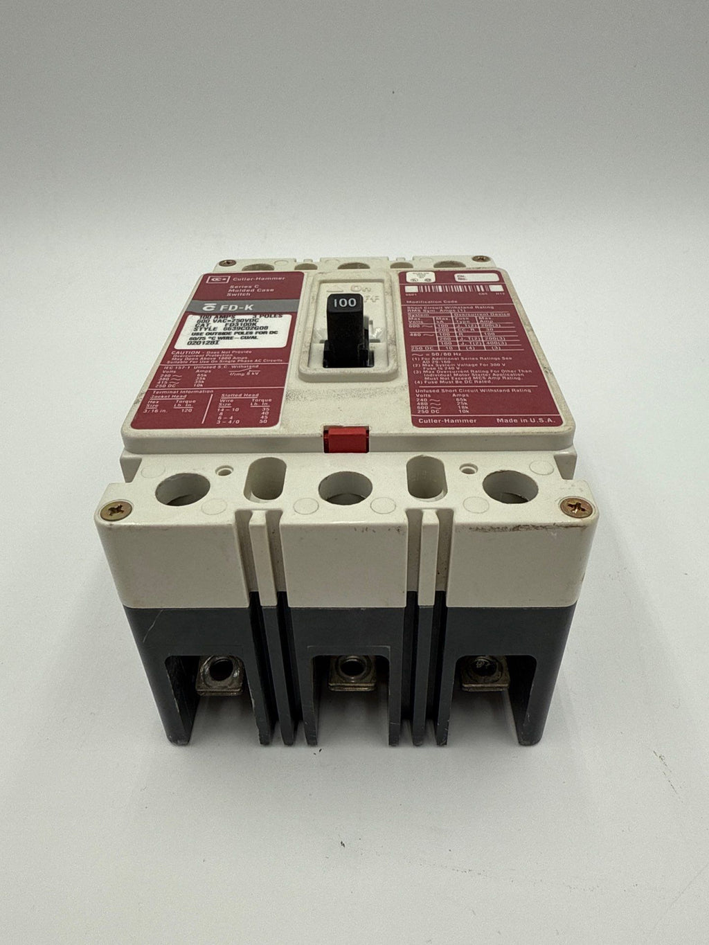 Cutler Hammer FD3100K Circuit Breaker 100A 3P 600V FD-K 3 Pole 100 Amp