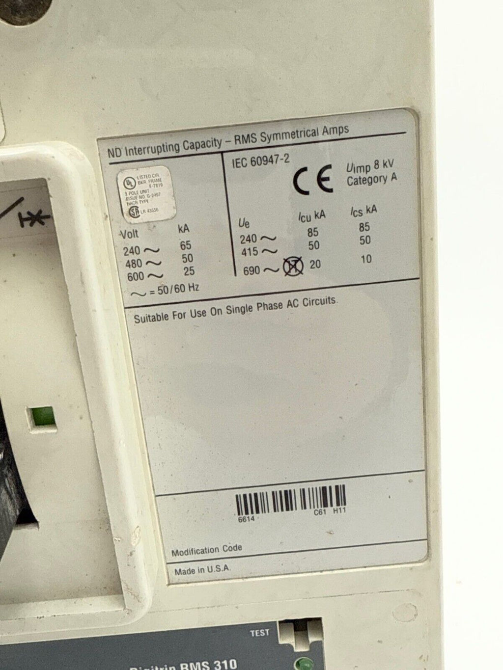 Cutler Hammer ND312T33W Circuit Breaker 1200A 3P 600V ND 1200 Amp 50kA
