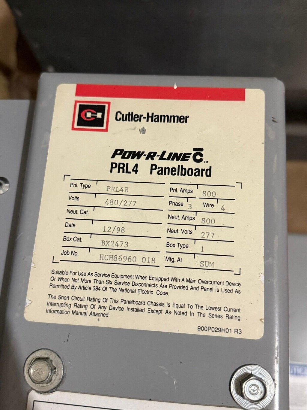 Cutler Hammer PRL4B Panelboard 800A 480/277V 3PH 4W MLO Indoor BX2473 800 Amp P666 Used