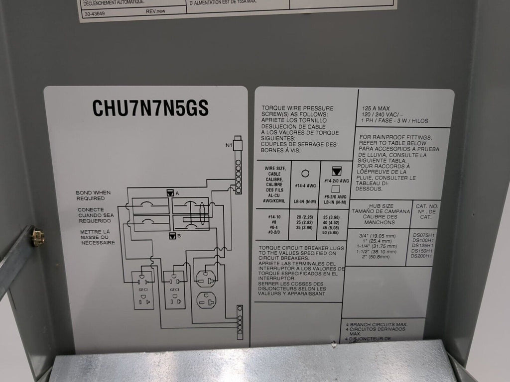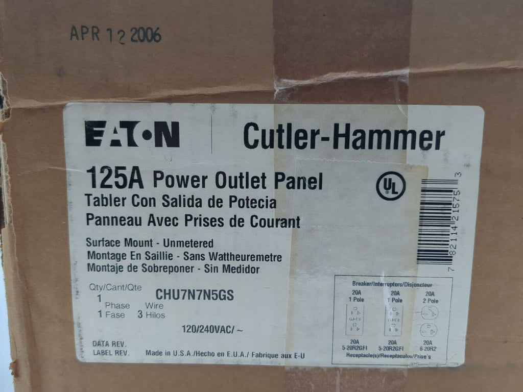 Eaton/Cutler-Hammer CHU7N7N5GS, 125 Amp, Type 3R, 120/240VAC, Power Outlet Panel