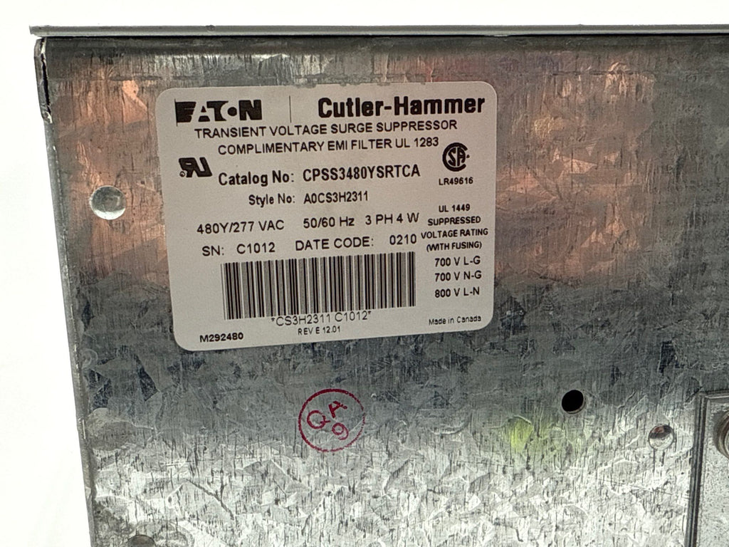 Eaton Cutler Hammer CPSS3480YSRTCA Transient Voltage Surge Suppressor 480/277V 3PH 4W 50/60Hz