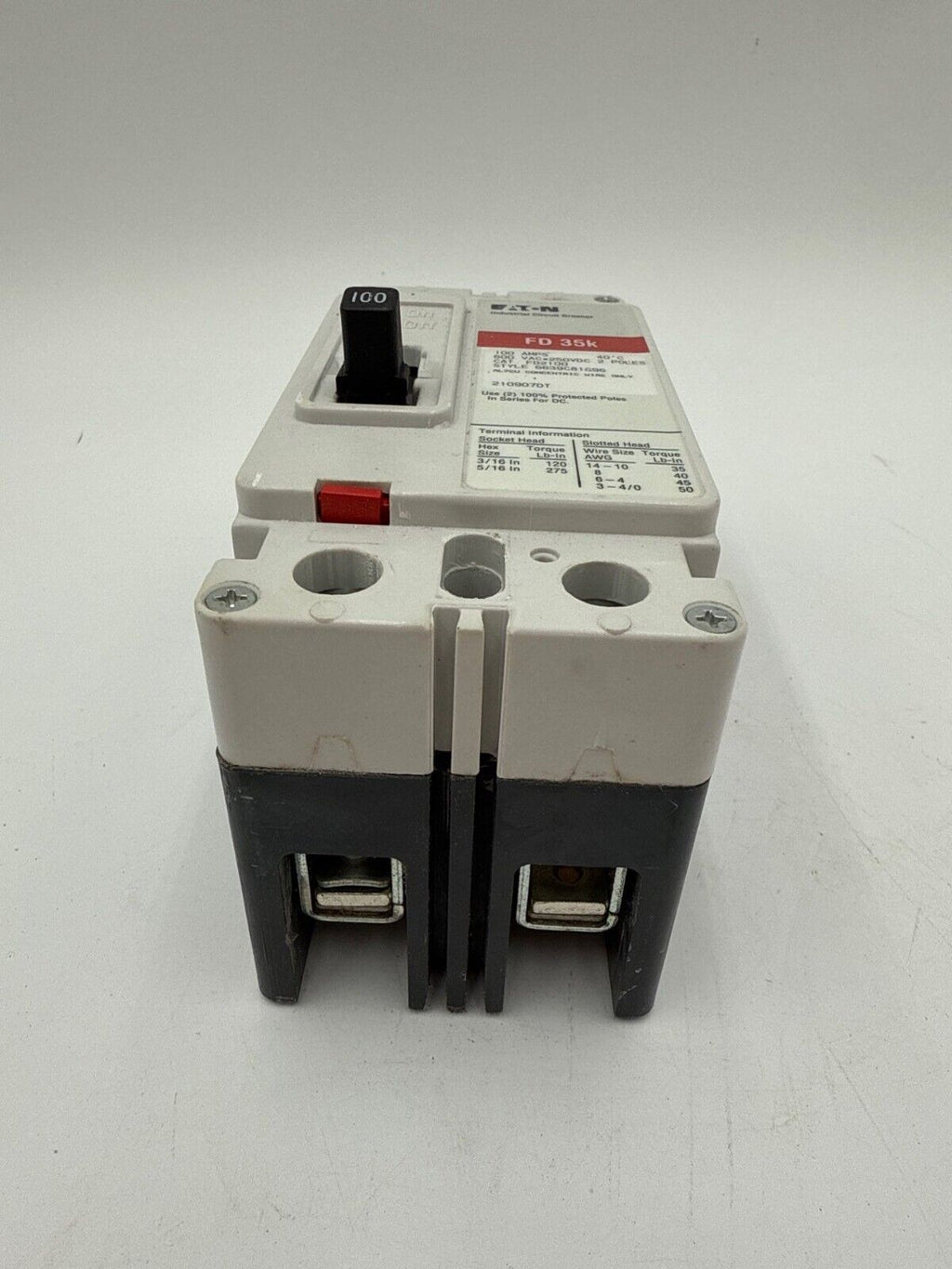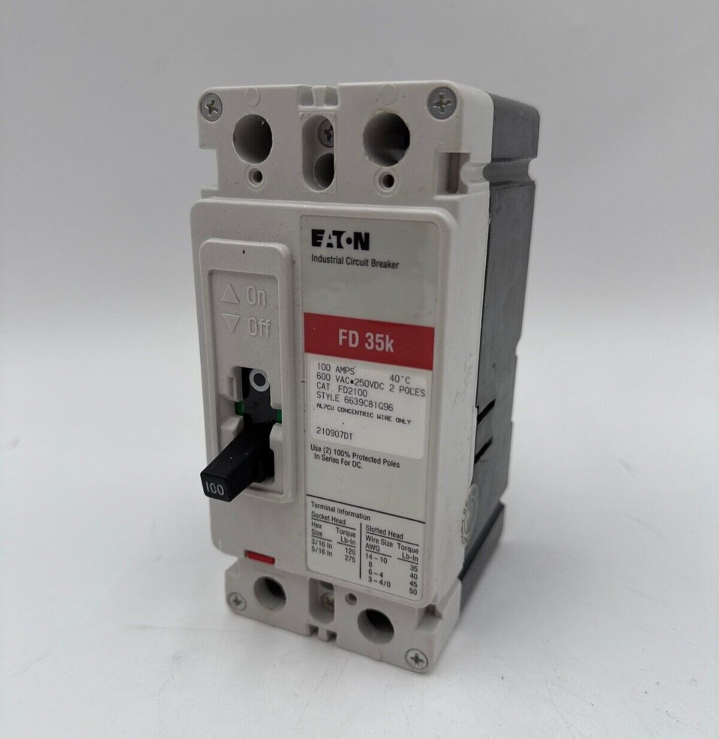 Eaton FD2100 Circuit Breaker 100A 2P 600V 1PH FD 35k 100 Amp 2 Pole